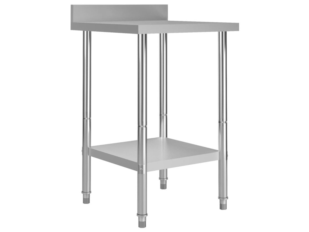 Stůl je vyrobený z nerezové oceli vysoké kvality, a tak vydrží i každodenní náročné používání. Snadno se také čistí. Navíc je vybavený praktickou zadní obrubou, která zpříjemňuje jeho použití. Ve spodní části se nachází police, kde si můžete zorganizovat váš úložný prostor. Nohy s funkcí vyrovnávání mají neklouzavý design, který zaručuje skvělou stabilitu a zároveň chrání podlahu.