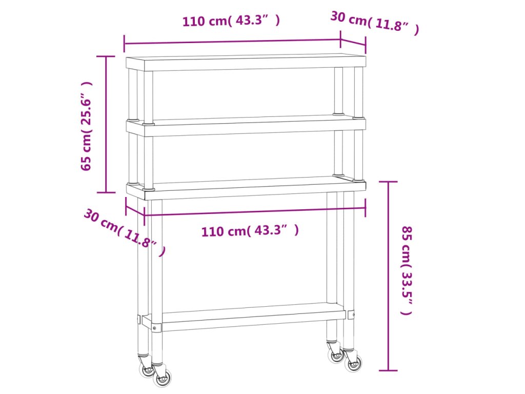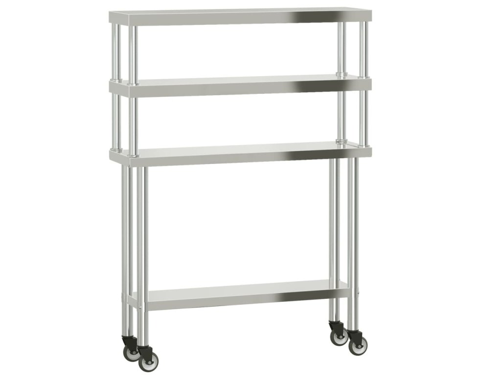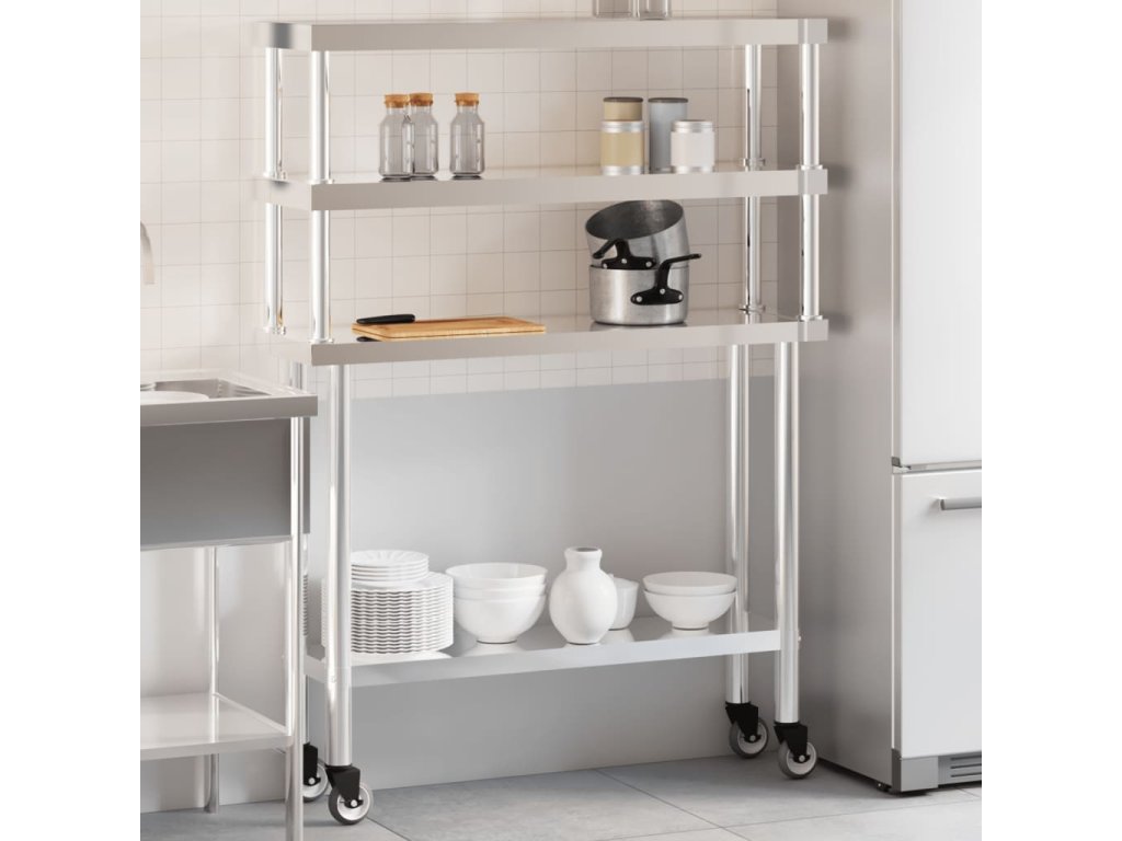 - Dostatek pracovního prostoru: Nerezový přípravný stůl je navržen se spodní a 2patrovou horní policí, které lze přizpůsobit různým úložným potřebám, a poskytuje dostatek úložného místa pro vaši mikrovlnou troubu, kuchyňské náčiní nebo jiné nástroje, které můžete potřebovat.