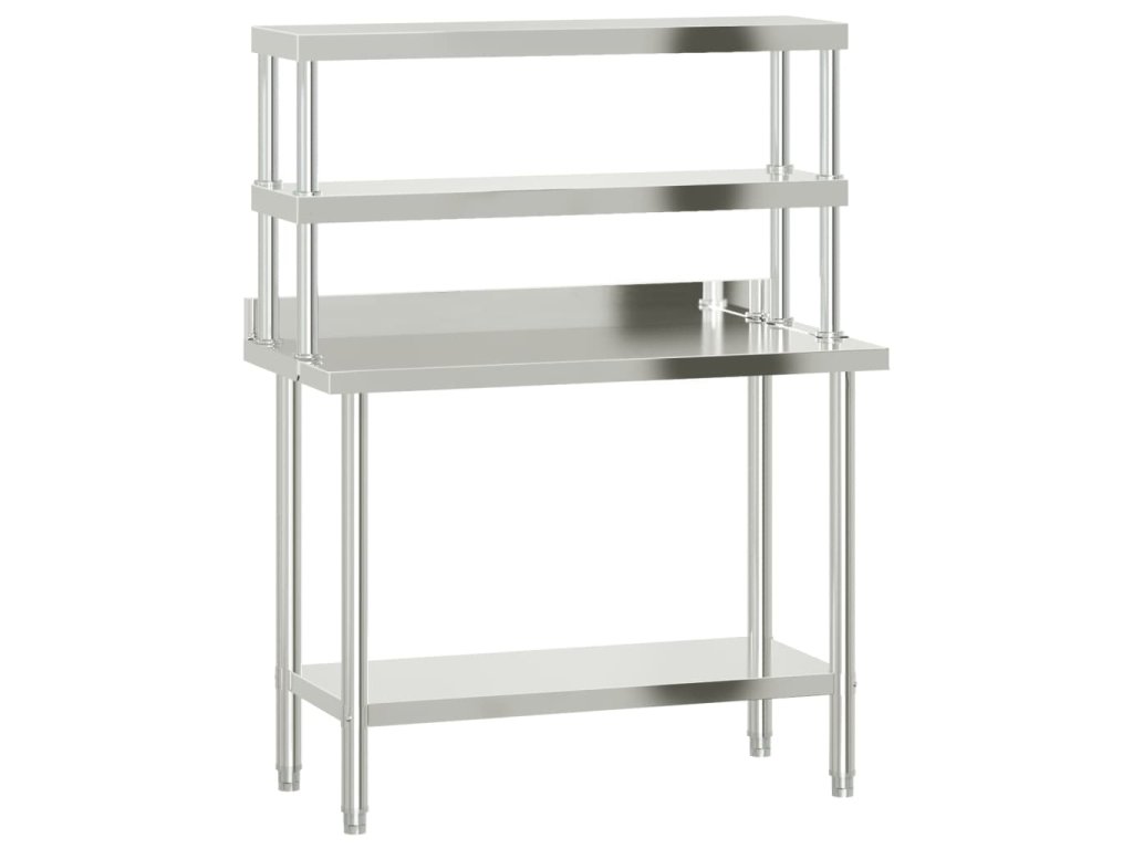 - Dostatek pracovního prostoru: Nerezový přípravný stůl je navržen se spodní a 2patrovou horní policí, které lze přizpůsobit různým úložným potřebám, a poskytuje dostatek úložného místa pro vaši mikrovlnou troubu, kuchyňské náčiní nebo jiné nástroje, které můžete potřebovat.