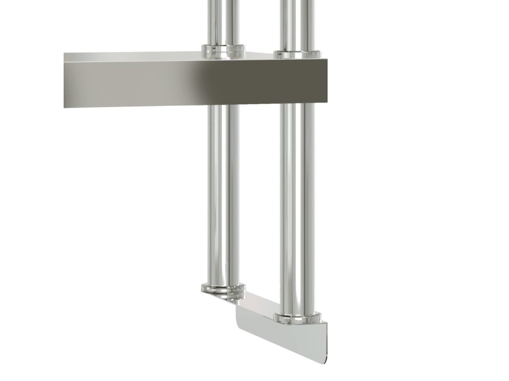 - Odolná a stabilní konstrukce: Pracovní stůl je vyroben z nerezové oceli, výborně tedy odolává korozi a rzi a zaručí vám dlouhá léta používání. Hladký povrch se snadno čistí a udržuje, což zajišťuje hygienickou přípravu pokrmů.
