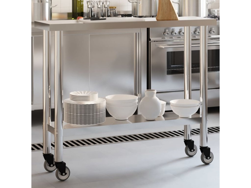 - Dostatek pracovního prostoru: Nerezový přípravný stůl je navržen se spodní policí, jež lze přizpůsobit různým úložným potřebám, a poskytuje dostatek úložného místa pro vaši mikrovlnou troubu, kuchyňské náčiní nebo jiné nástroje, které můžete potřebovat.