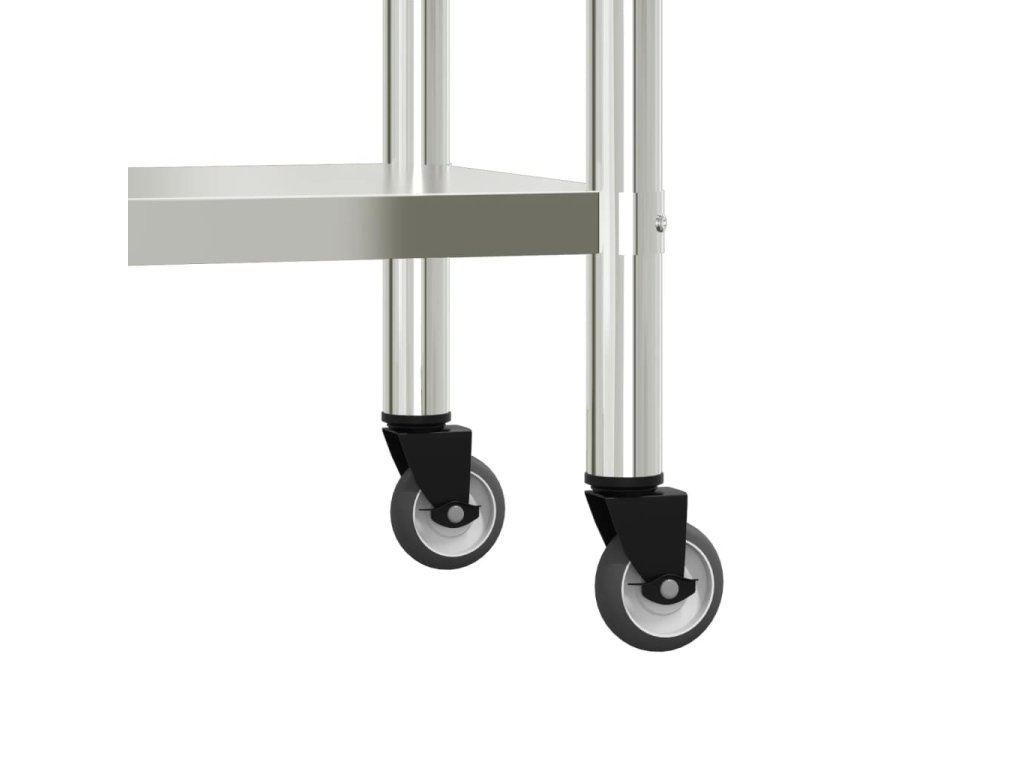 - Odolný materiál: Pracovní stůl je vyroben z odolné nerezové oceli, která skvěle vzdoruje korozi a rzi a zajišťuje dlouholeté spolehlivé používání. Snadno se také čistí.