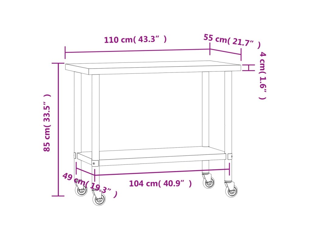 - Dostatek pracovního prostoru: Nerezový přípravný stůl je navržen se spodní policí, jež lze přizpůsobit různým úložným potřebám, a poskytuje dostatek úložného místa pro vaši mikrovlnou troubu, kuchyňské náčiní nebo jiné nástroje, které můžete potřebovat.