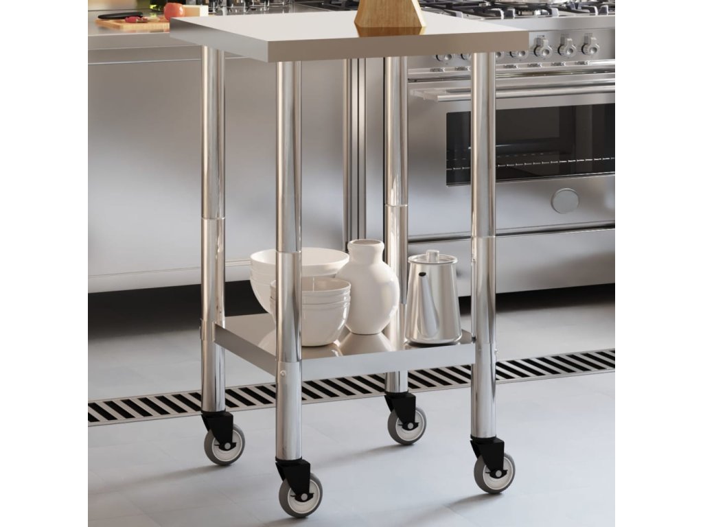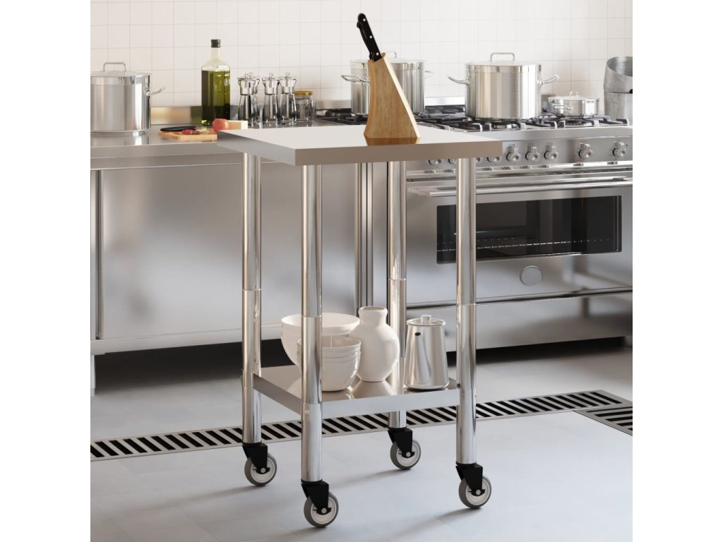 - Odolný materiál: Pracovní stůl je vyroben z odolné nerezové oceli, která skvěle vzdoruje korozi a rzi a zajišťuje dlouholeté spolehlivé používání. Snadno se také čistí.