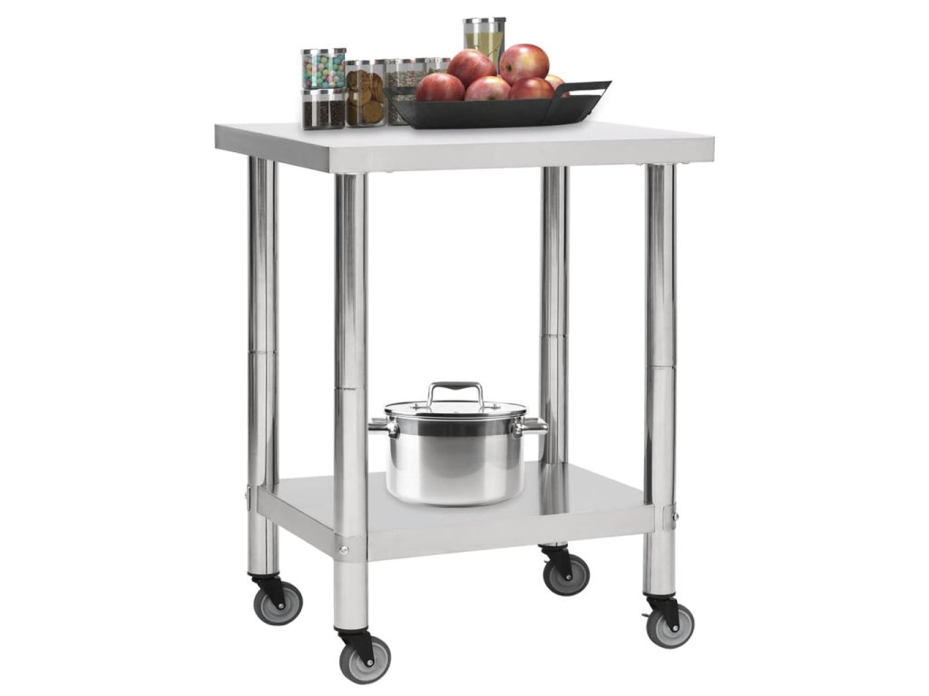 Tento gastronomický pracovní stůl je vyroben z nerezové oceli s dlouhou životností. Hladký povrch je odolný proti korozi a snadno se čistí. Dolní deska nabízí další úložný prostor. Pracovní stůl je vybaven 4 pohyblivými kolečky, takže jej můžete volně přemisťovat. Kromě toho jsou 2 kolečka vybavena brzdami, které udrží stůl na místě.