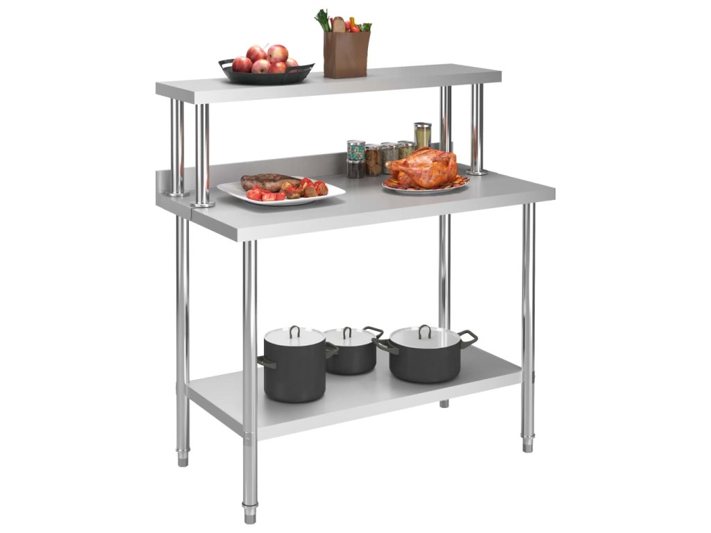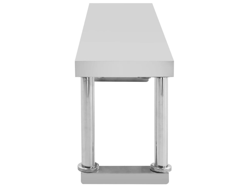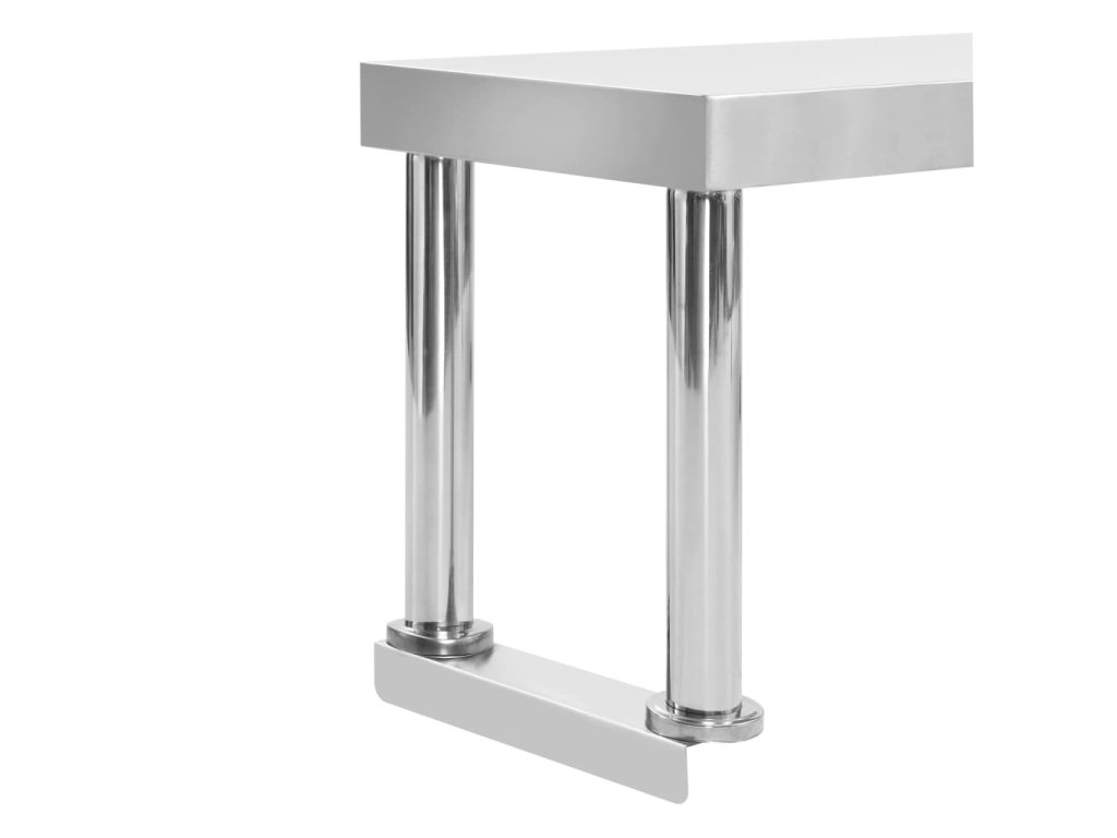 Gastronomický pracovní stůl je vyrobený z nerezové oceli vysoké kvality, a tak vydrží i každodenní náročné používání. Snadno se také čistí. Navíc je vybavený praktickou zadní obrubou, která zpříjemňuje jeho použití. Ve spodní části se nachází police, kde si můžete zorganizovat váš úložný prostor. Nohy s funkcí vyrovnávání mají neklouzavý design, který zaručuje skvělou stabilitu a zároveň chrání podlahu. Horní police vám umožní využít plochu stolu na maximum.