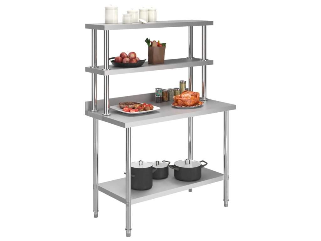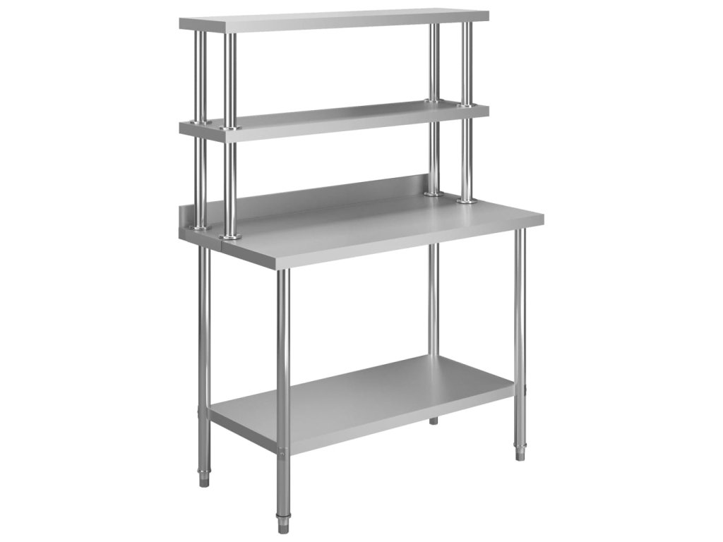 Gastronomický pracovní stůl je vyrobený z nerezové oceli vysoké kvality, a tak vydrží i každodenní náročné používání. Snadno se také čistí. Navíc je vybavený praktickou zadní obrubou, která zpříjemňuje jeho použití. Ve spodní části se nachází police, kde si můžete zorganizovat váš úložný prostor. Nohy s funkcí vyrovnávání mají neklouzavý design, který zaručuje skvělou stabilitu a zároveň chrání podlahu. Dvě horní police vám umožní využít plochu stolu na maximum.