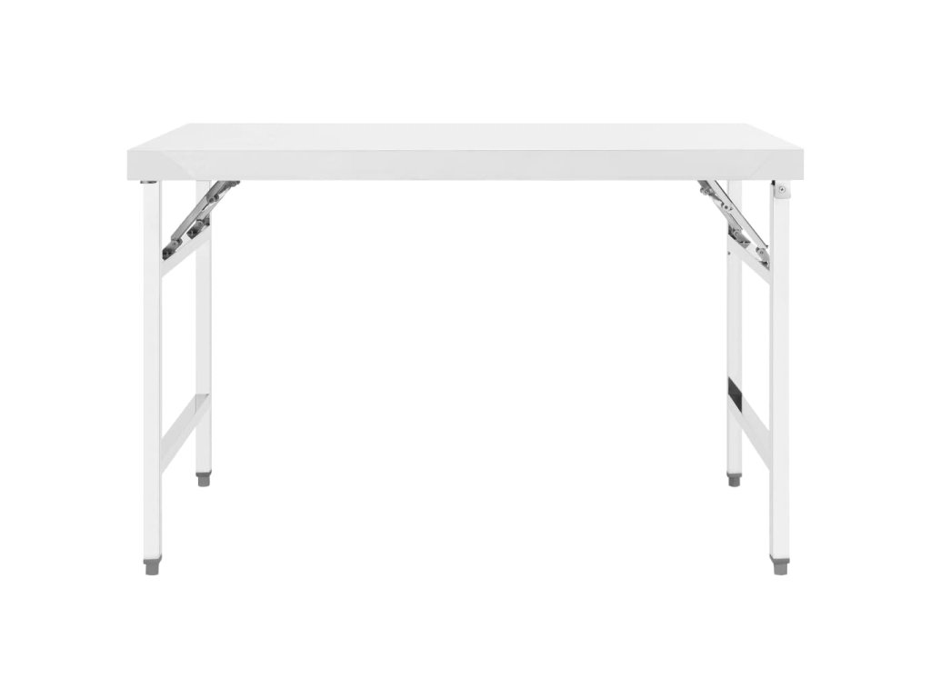 Tento pracovní stůl pro gastronomii, vyrobený z nerezové oceli, je pevný a stabilní po celá léta. Jeho vyztužená stolní deska s vysokou nosností je ideální pro umístění kuchyňského nářadí, potravin a dalších potřeb. Stůl se také snadno čistí vlhkým hadříkem. Pracovní stůl se skládacím designem můžete snadno složit, abyste ušetřili místo, když ho právě nepoužíváte.