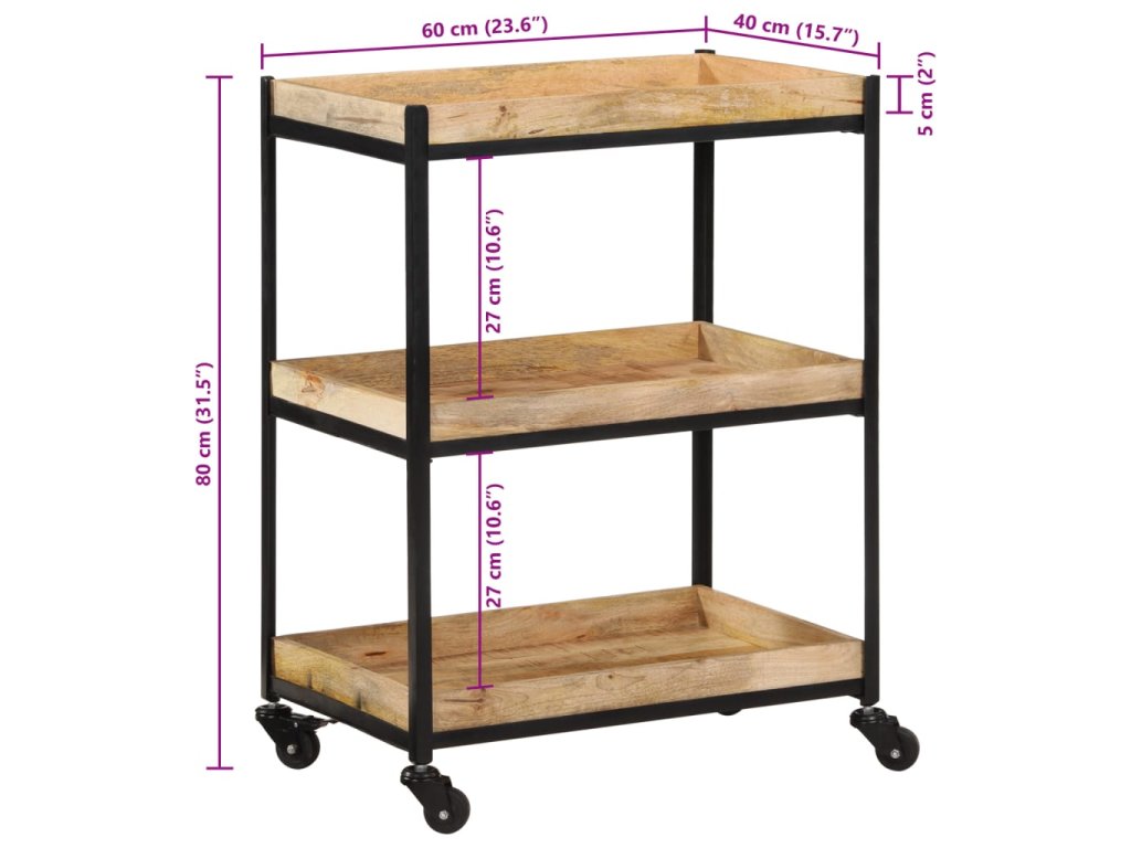 - Snadný pohyb: Kuchyňský vozík je vybaven kolečky otočnými o 360°, což usnadňuje jeho přesouvání.