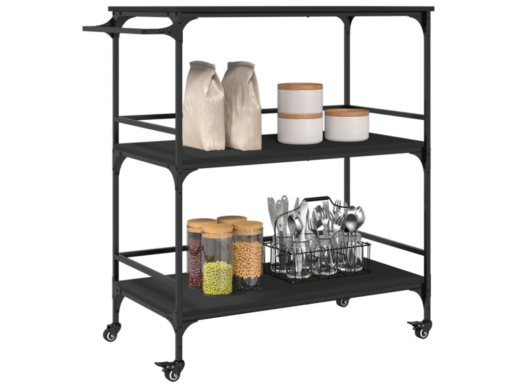 - Dostatek úložného prostoru: Tento vozík na zeleninu nabízí dostatek úložného prostoru, abyste měli na dosah potraviny, misky, talíře, recepty a další kuchyňské náčiní. Na bočním věšáku budete mít utěrky po ruce.
