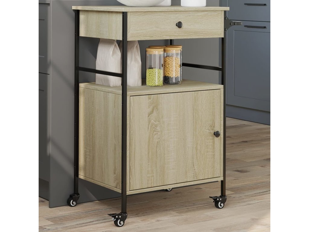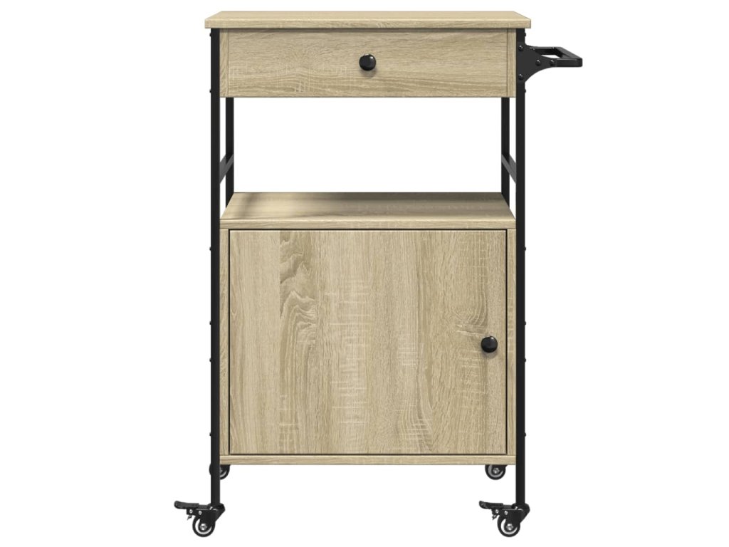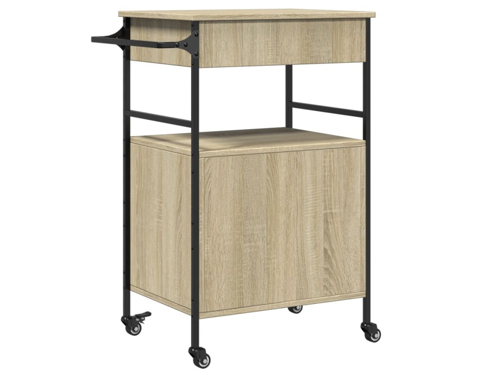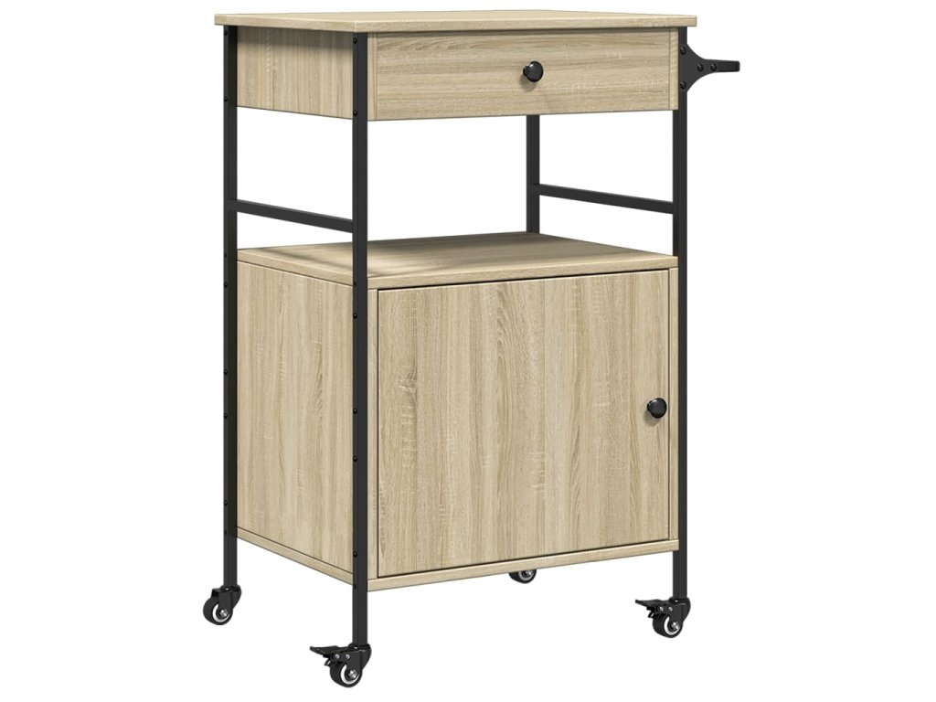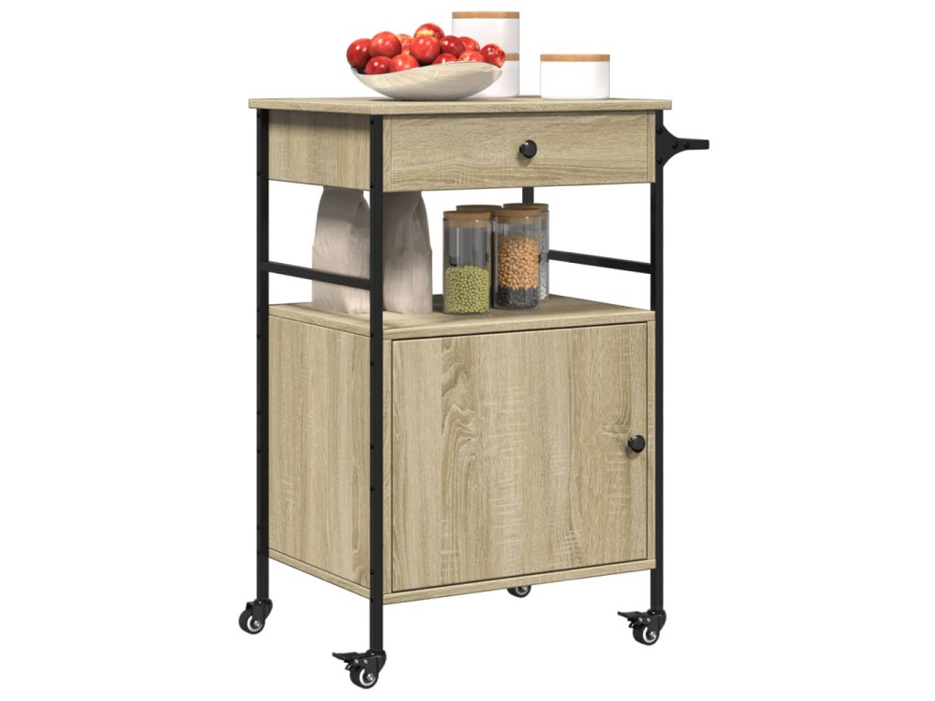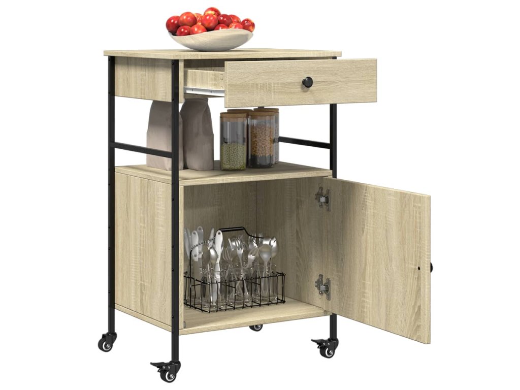 - Dostatek úložného prostoru: Tento vozík na zeleninu nabízí dostatek úložného prostoru, abyste měli na dosah potraviny, misky, talíře, recepty a další kuchyňské náčiní. Na bočním věšáku budete mít utěrky po ruce.