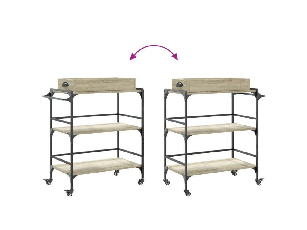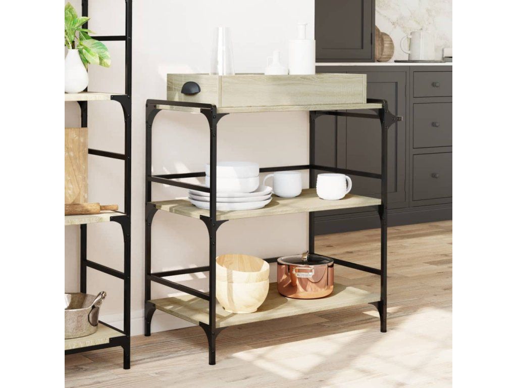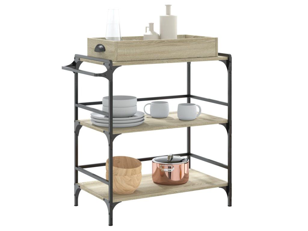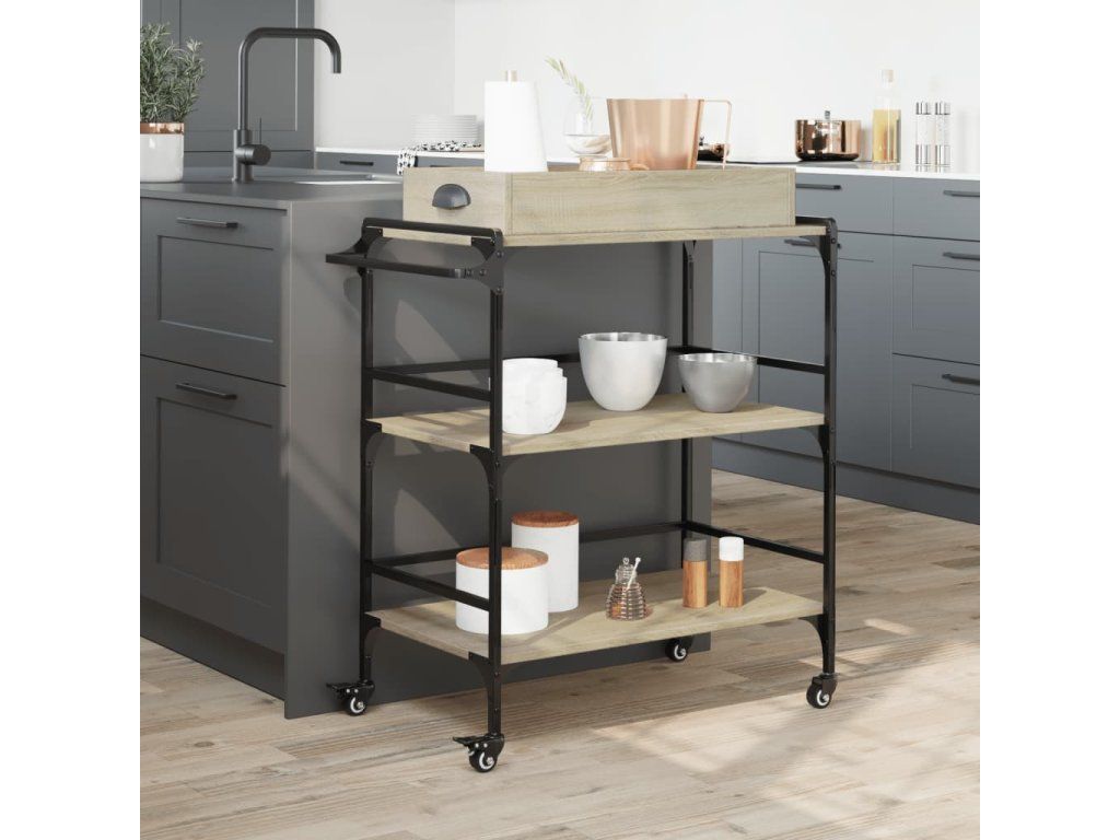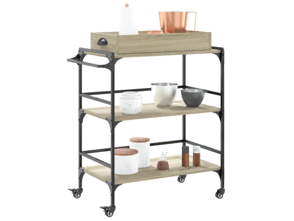 - Dostatek úložného prostoru: Tento vozík na zeleninu nabízí dostatek úložného prostoru, abyste měli na dosah potraviny, misky, talíře, recepty a další kuchyňské náčiní. Na bočním věšáku budete mít utěrky po ruce.