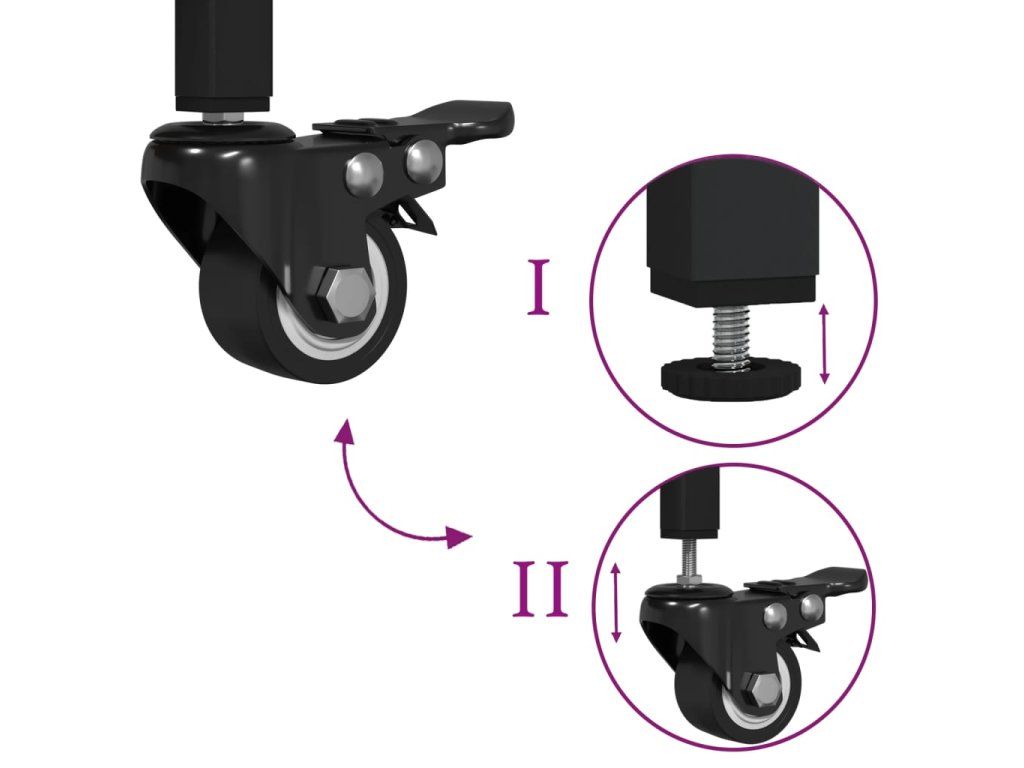 - Flexibilní instalace: Tento kuchyňský úložný vozík lze použít dvěma způsoby. Můžete jej umístit na podlahu pomocí nastavitelných nožiček pro zajištění stability na nerovném povrchu nebo připevnit kolečka umožňující snadný pohyb.