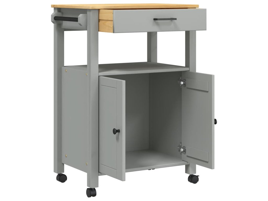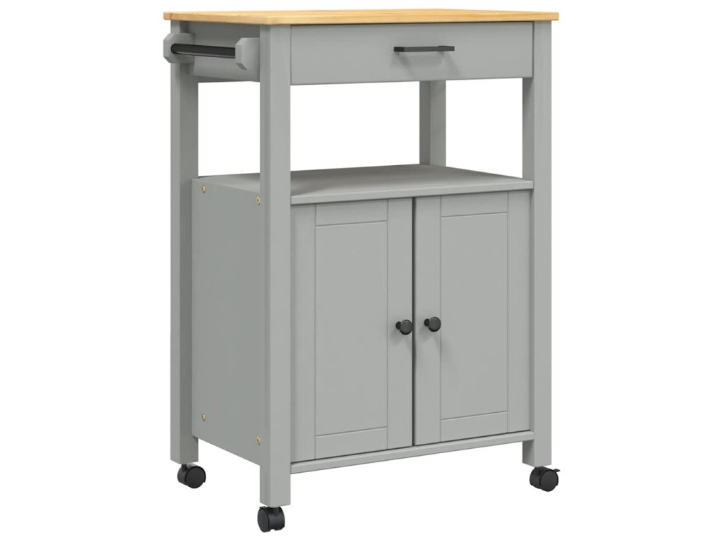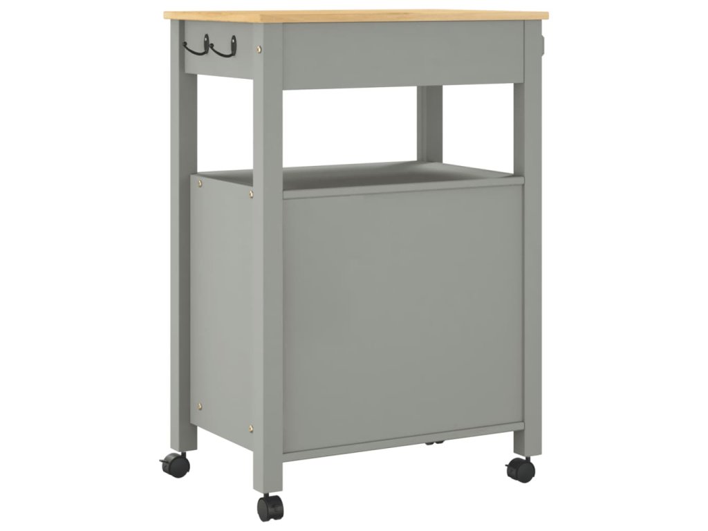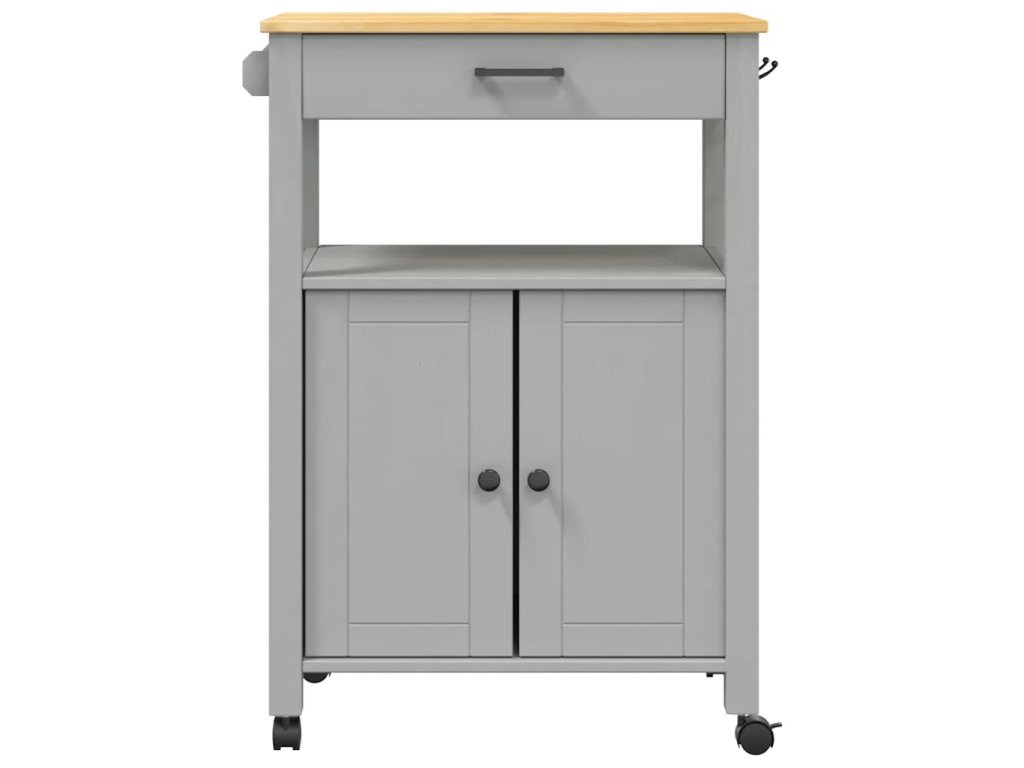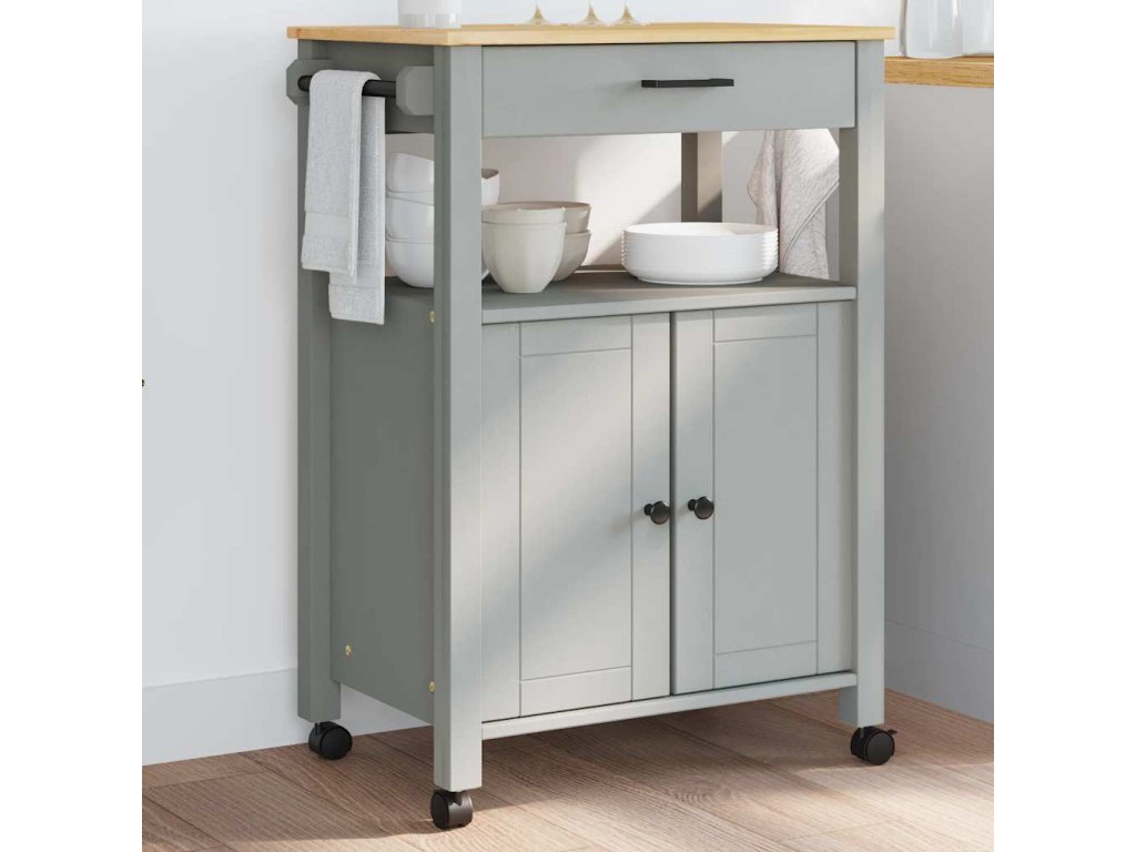 - Odolný rám: Masivní borové dřevo je nádherný přírodní materiál. Borové dřevo má rovnou kresbu a obsahuje suky, které materiálu dodávají jeho charakteristický, rustikální vzhled. Kuchyňský úložný vozík je vyroben z masivního borového dřeva a je odolný a robustní.