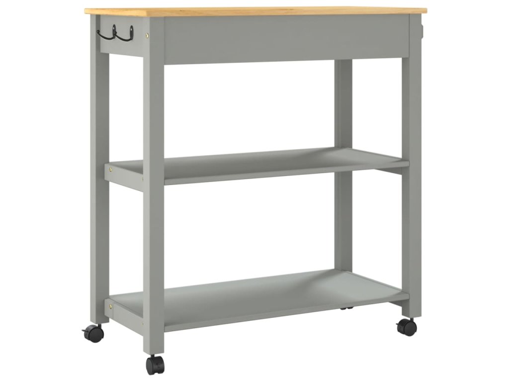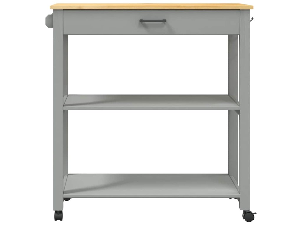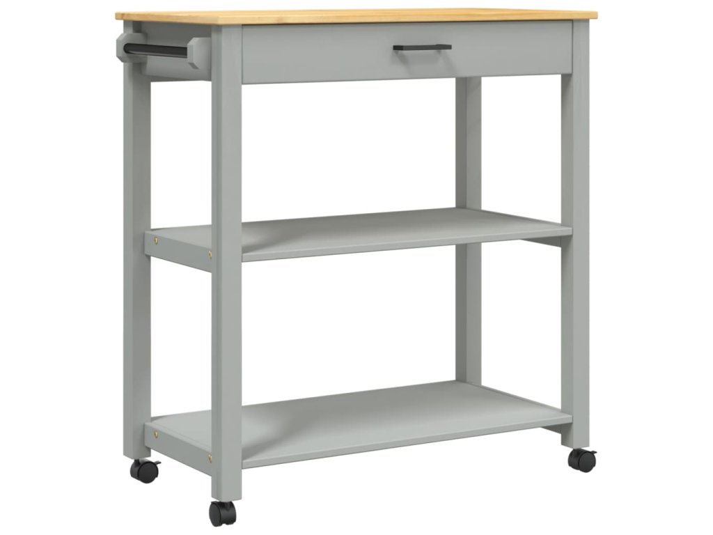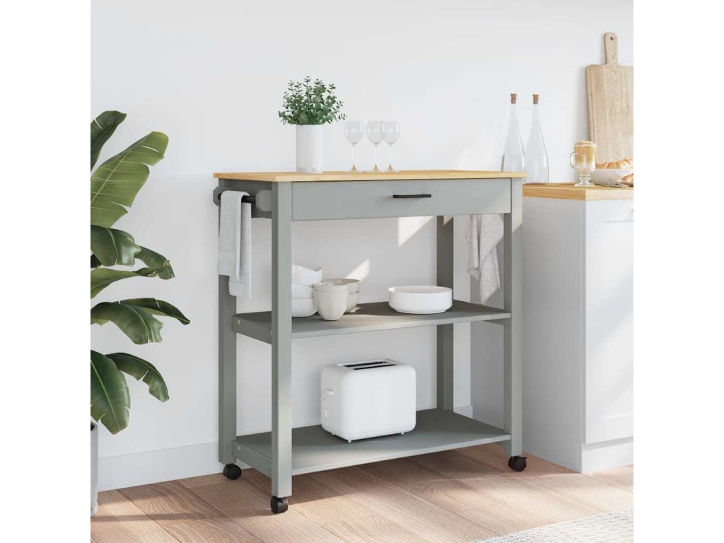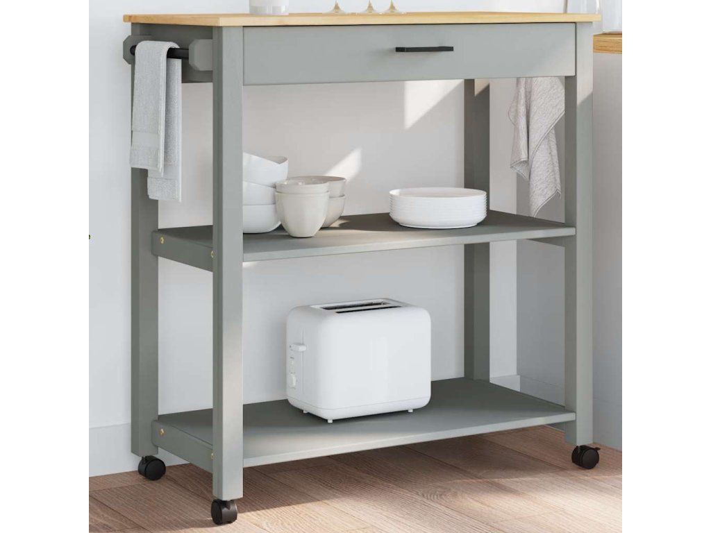 - Odolný rám: Masivní borové dřevo je nádherný přírodní materiál. Borové dřevo má rovnou kresbu a obsahuje suky, které materiálu dodávají jeho charakteristický, rustikální vzhled. Kuchyňský úložný vozík je vyroben z masivního borového dřeva a je odolný a robustní.