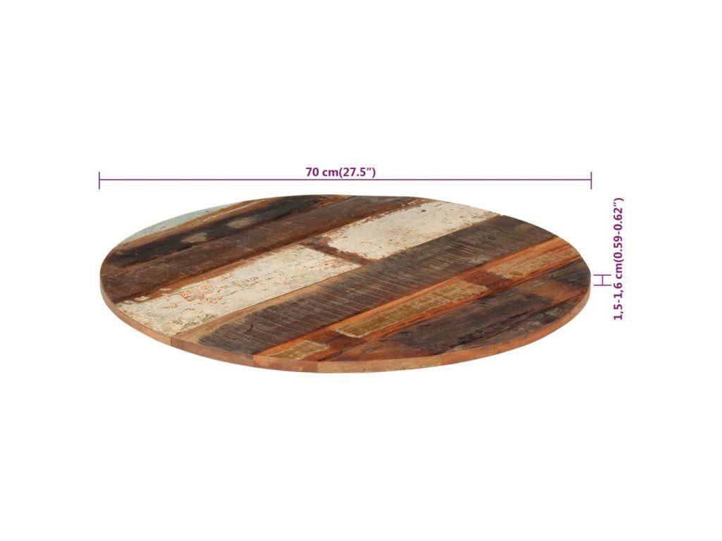 Náhradní stolová deska je vyrobená z masivního tropického recyklovaného dřeva, které je vyrobené ze dřeva, které pochází ze starých konstrukcí, jako jsou sklady, stodoly, přístřešky, mlýny a domy. Recyklované dřevo má vlastnosti celé řady různých druhů dřevin, jako je mangovník, tvrdé dřevo, teak apod. Známky užívání a viditelná kresba dřeva dává každému kusu jeho vlastní historii a jedinečný vzhled. Každý krok procesu se provádí s mimořádnou péčí, ať už jde o leštění, natírání nebo lakování. Masivní dřevěnou desku lze také použít pro konferenční stolky, odkládací stoly, barové stoly, telefonní stolky, konzolové stoly, noční stolky, police nebo jako nábytkovou desku. Tuto stolní desku můžete také kombinovat s libovolným stylem nohou podle vašich představ. Deska stolu se snadno čistí vlhkým hadříkem.