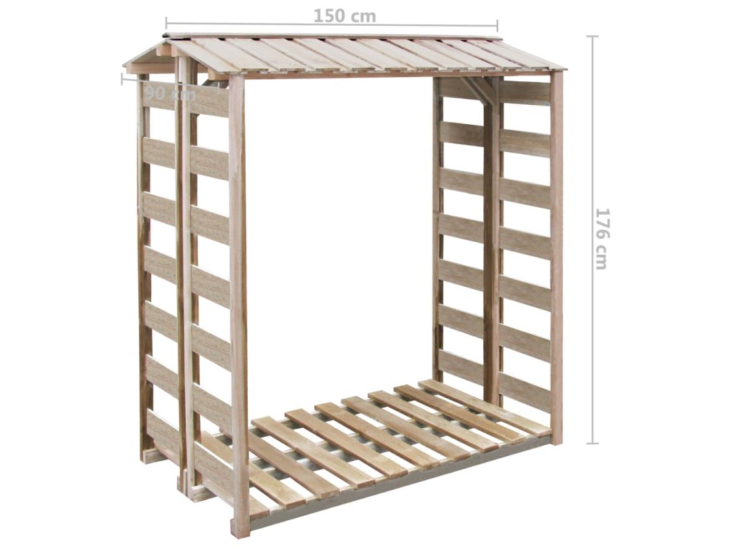 Naše kůlna na dříví je vyrobená z vysoce kvalitního borového dřeva, které bylo impregnováno pod tlakem, a proto je pevná, robustní a odolná vůči hnilobě. Kůlna má šikmou střechu, která dřevo ochrání před deštěm a sněhem, laťkové boční stěny, které napomáhají nezbytnému proudění vzduchu, a vyvýšenou laťkovou podlahu, na které dříví zůstane suché a větrané.