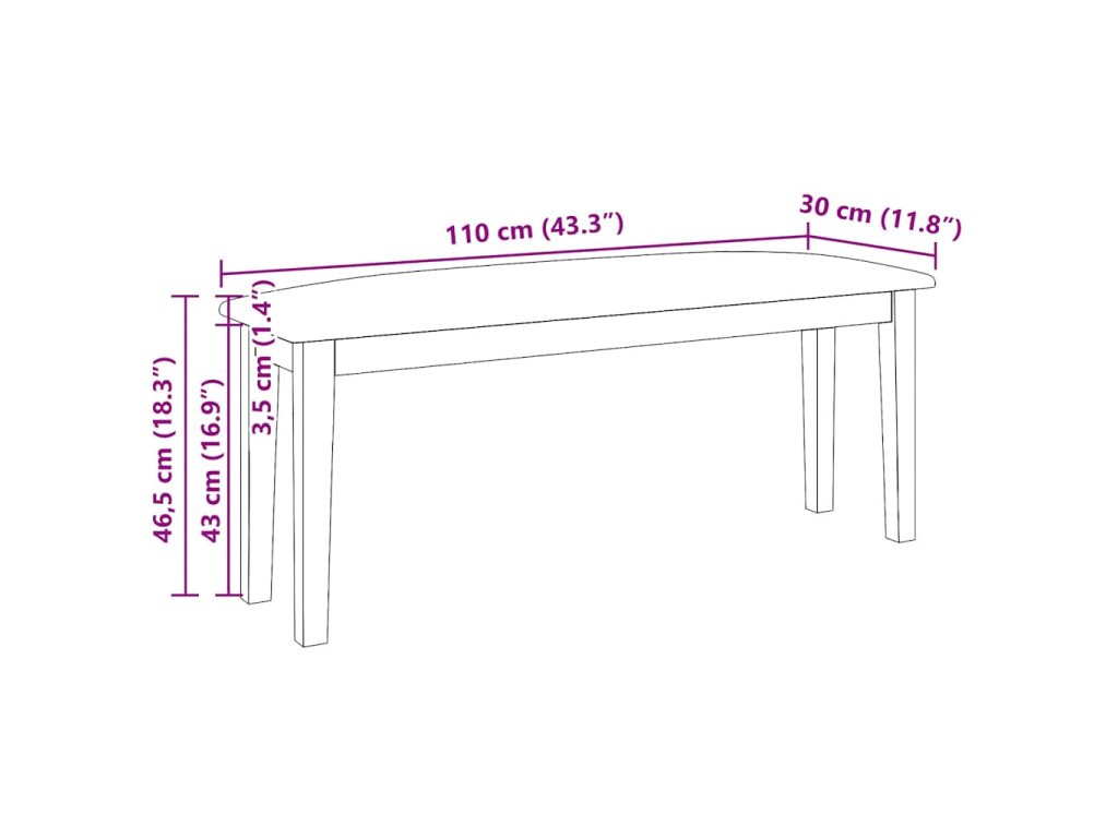 - Rozměry: 110 x 30 x 46,5 cm (š x h x v)