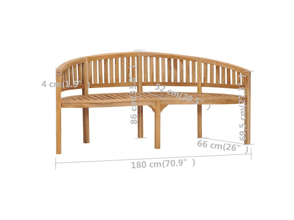 Pořiďte si tuto krásnou lavici ve tvaru banánu! Je vyrobená z masivního teakového dřeva a vaše bydlení nebo okolí vašeho domu zkrášlí svým elegantním šarmem.