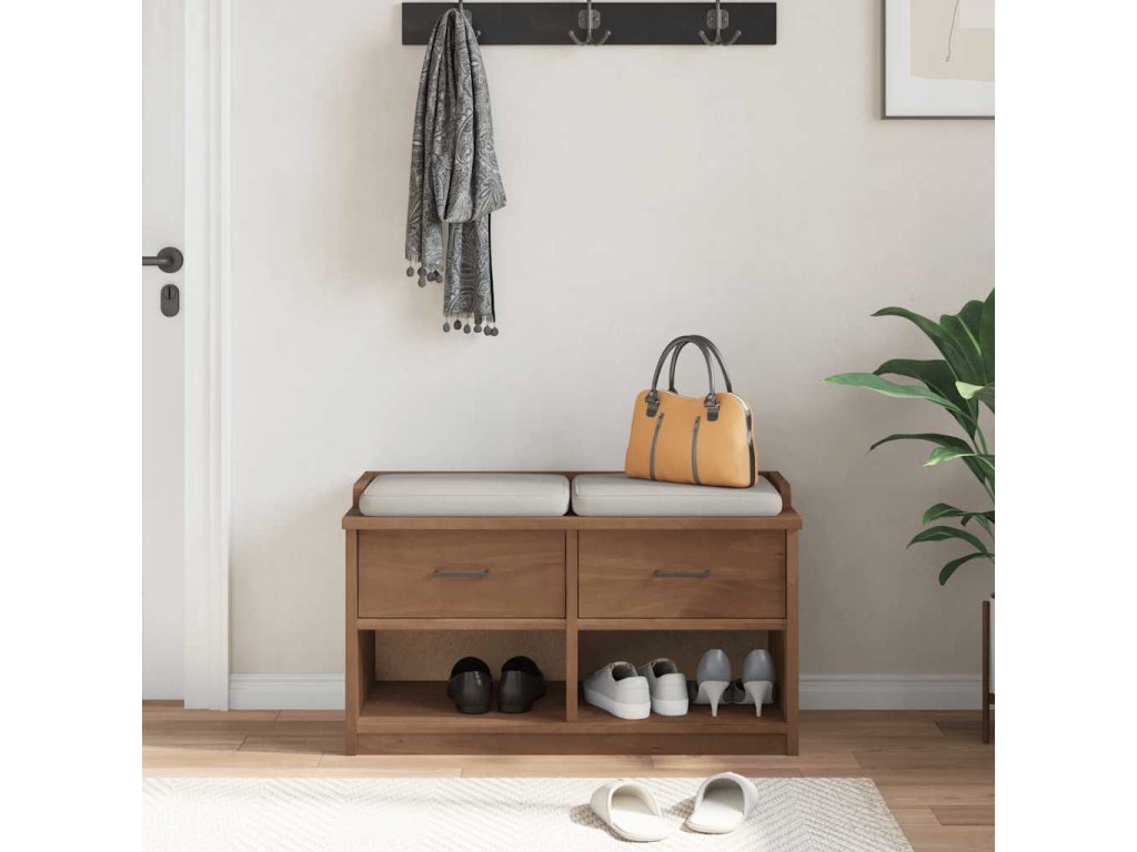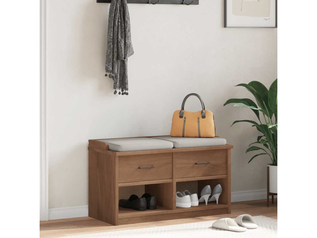 - Vzhled ořechového dřeva: Sedačka v předsíni, vyrobená z masivního borovicového dřeva s povrchovou úpravou v barvě ořechového dřeva, dodá vašemu prostoru nadčasové teplo a sofistikovanost. Její elegantní design nejen zvýrazní váš interiér, ale nabízí také odolnost a praktičnost pro každodenní použití.