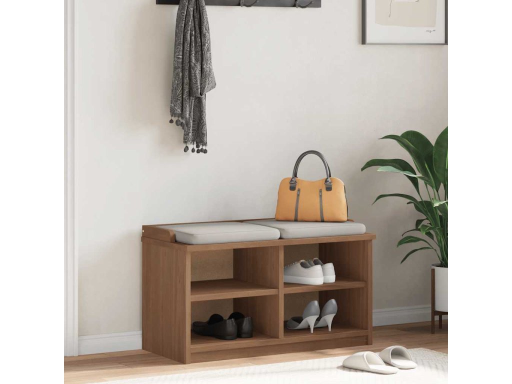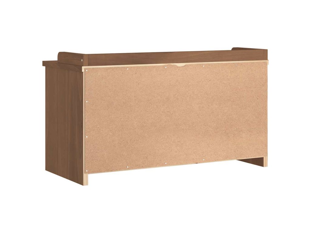- Vzhled ořechového dřeva: Sedačka v předsíni, vyrobená z masivního borovicového dřeva s povrchovou úpravou v barvě ořechového dřeva, dodá vašemu prostoru nadčasové teplo a sofistikovanost. Její elegantní design nejen zvýrazní váš interiér, ale nabízí také odolnost a praktičnost pro každodenní použití.