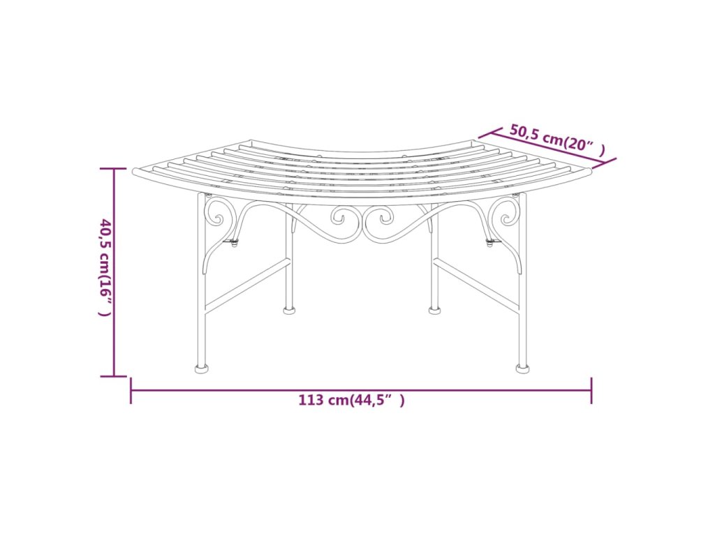 - Stylový vzhled: Čisté linie a elegantní design této kovové lavice jistě upoutají pozornost na každé zahradě, terase nebo dvorku.