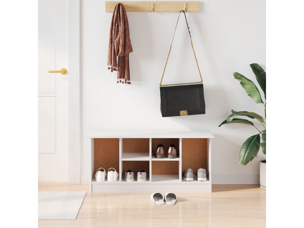 - Pevná horní deska: Na robustní horní část úložné lavice si můžete pohodlně sednout při obouvání a zouvání bot.