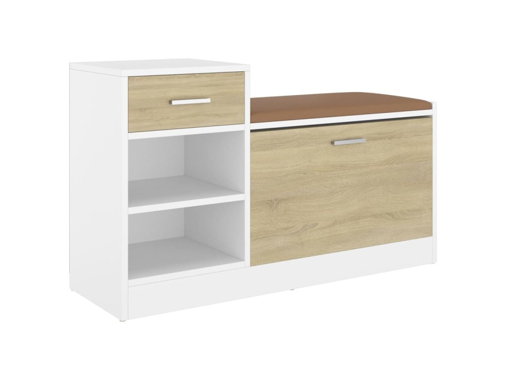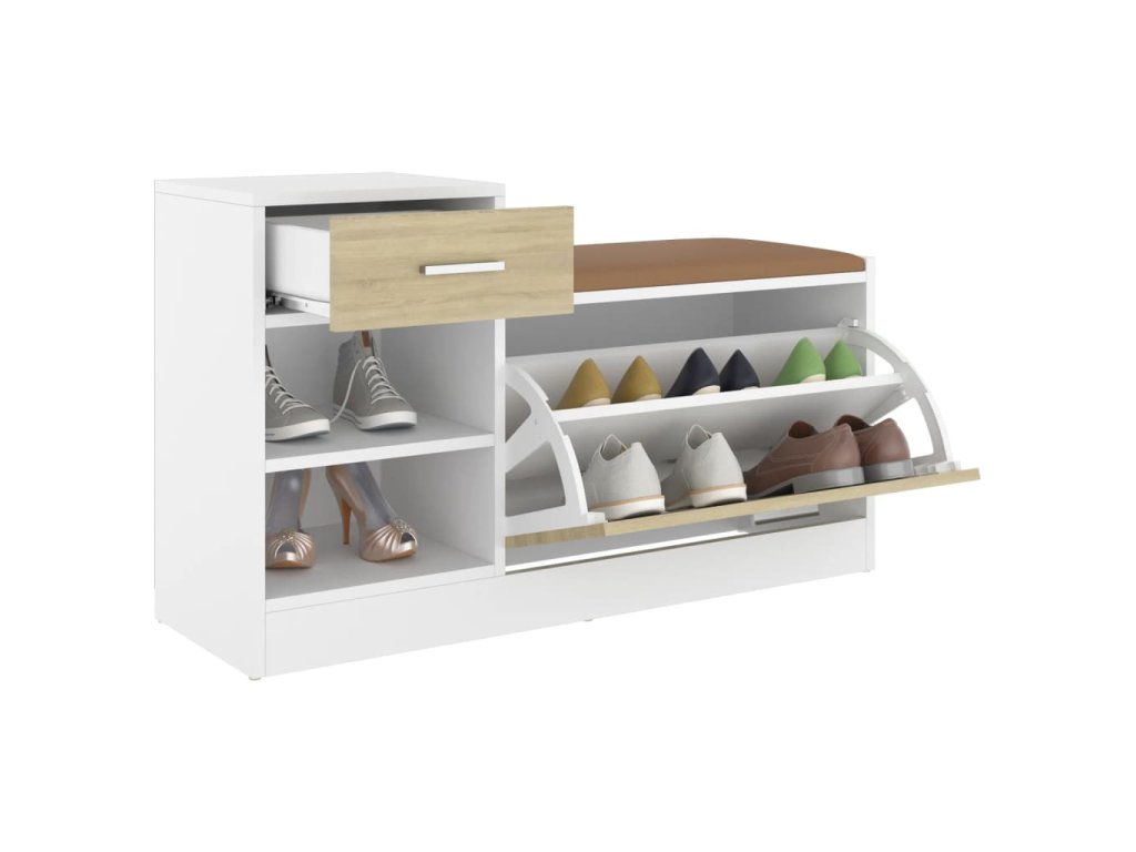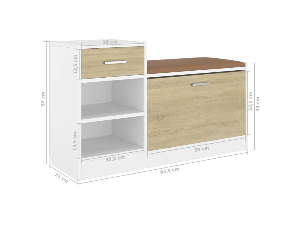 Organizér na boty je vyroben z kvalitního kompozitního dřeva, které mu dodává elegantní vzhled, stabilitu a odolnost. Je vybaven poduškou z umělé kůže, na které se můžete při nazouvání a zouvání bot pohodlně posadit. Navíc se snadno čistí. Tato lavice poskytuje dostatek úložného prostoru a nejlépe se hodí do předsíní, chodeb a obytných prostor.