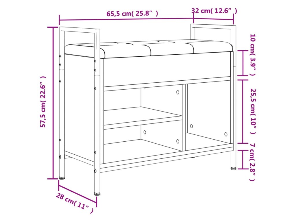 - Pohodlné sezení: Silně polstrovaná poduška na sedáku vám poskytne optimální pohodlí při nazouvání a zouvání bot.
