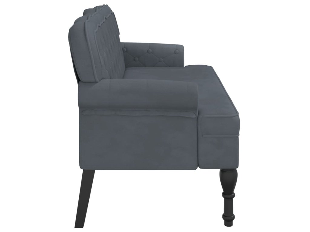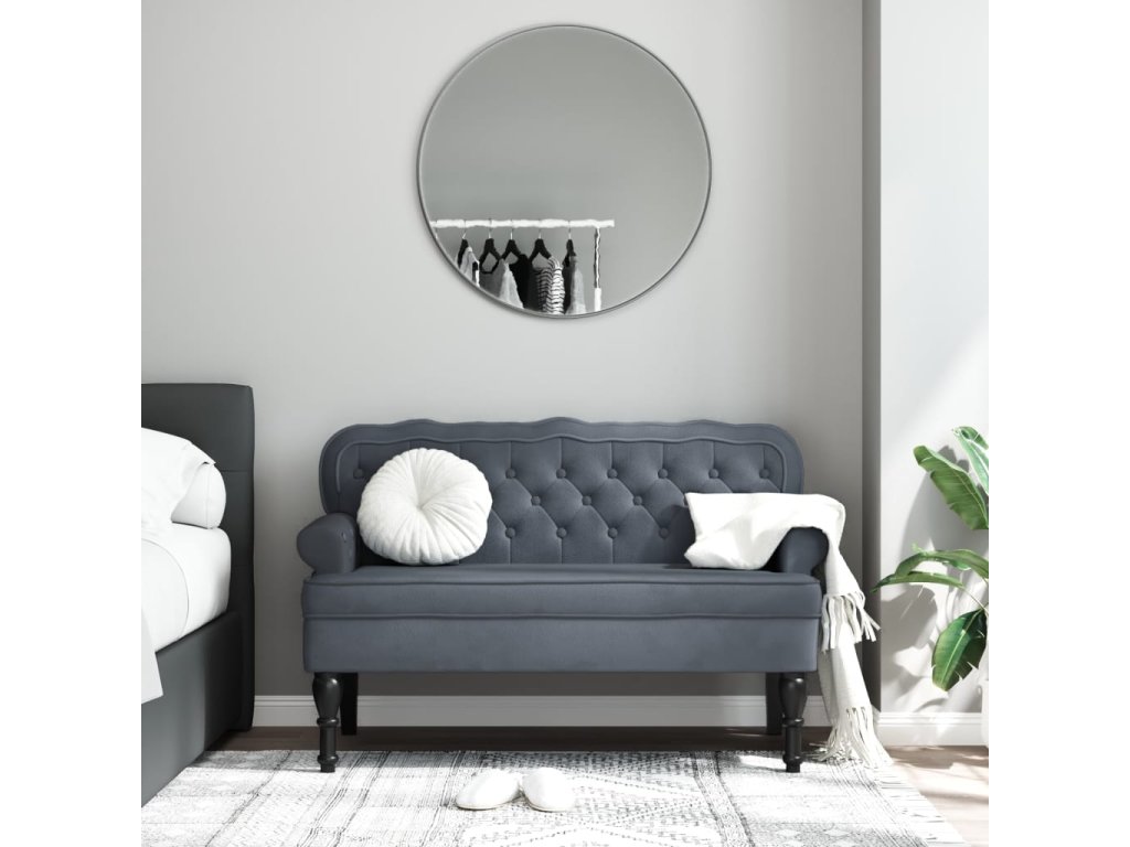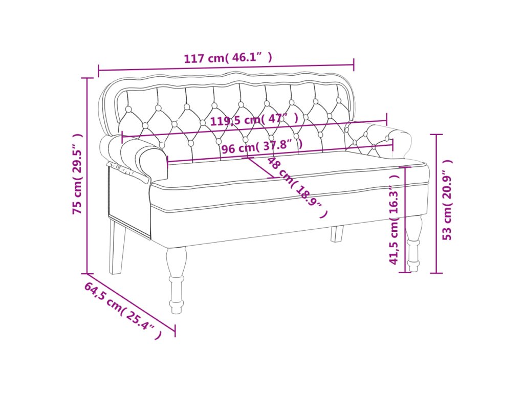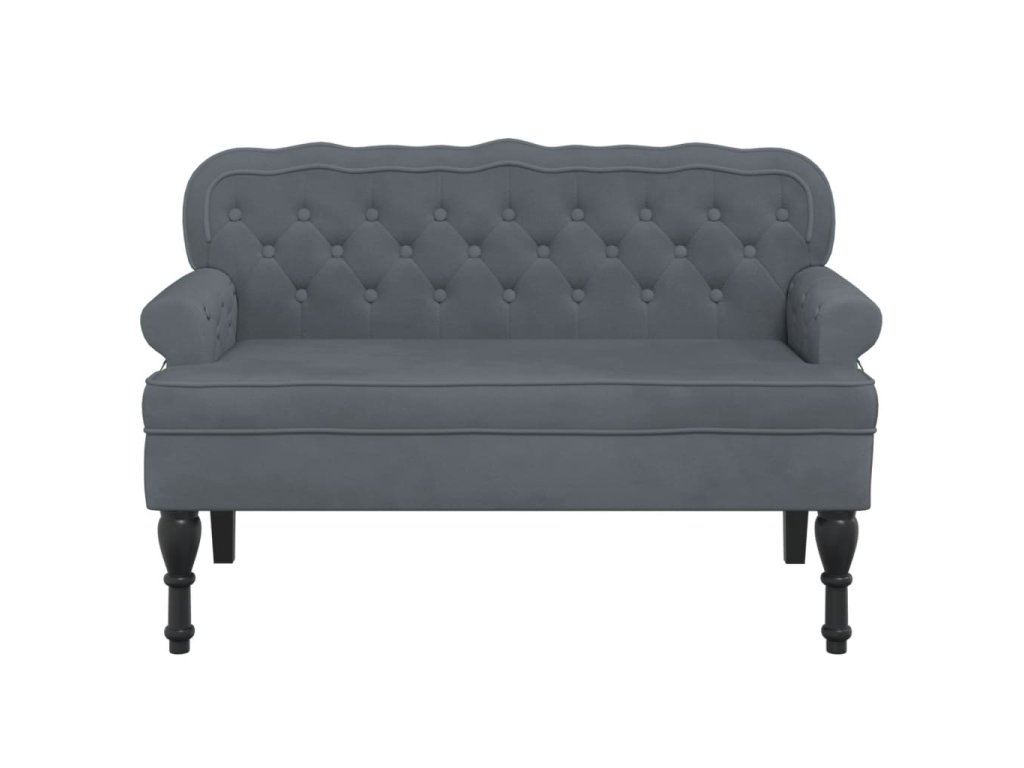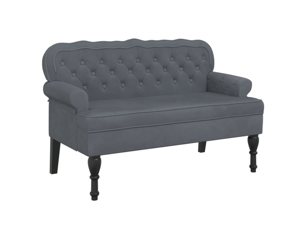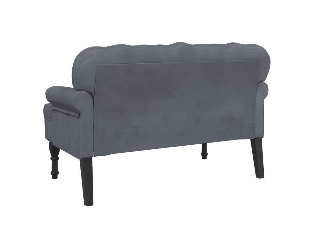 - Elegantní design: Lavice má zvlněné opěradlo, všívané knoflíčky, zakulacené područky a nohy ve starožitném stylu, což vašemu domovu dodá nádech elegance.