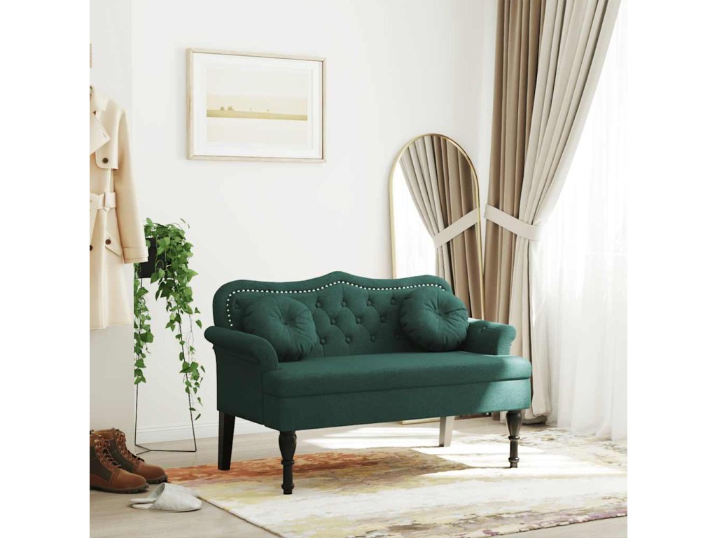 - Elegantní design: Lavice má všívané knoflíčky, zakulacené područky, opěradlo s obloukovými liniemi a nohy ve starožitném stylu, což vašemu domovu dodá nádech elegance.