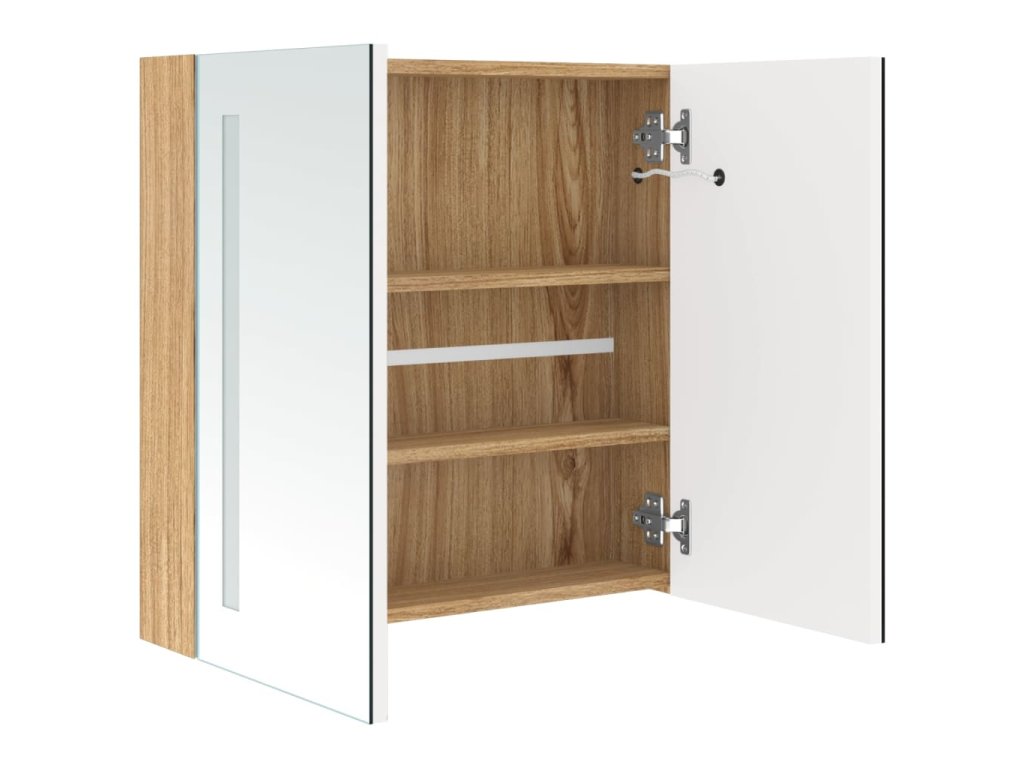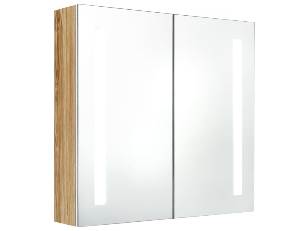 Je vyrobená z kvalitní MDF desky s melaminovou povrchovou úpravou, která zaručuje dlouholetou životnost. Energeticky úsporné LED pásky vám poskytnou optimální osvětlení pro líčení, holení či péči o pokožku. Dokonale rozzáří celou místnost, vaši tvář i váš úsměv. Uvnitř skříňky najdete 3 poličky s dodatečným úložným prostorem pro všechny vaše toaletní a kosmetické doplňky. Světlo můžete snadno zapnout či vypnout tlačítkem ve spodní části. Tato stylová a funkční skříňka ozvláštní vskutku jedinečným způsobem vybavení vaší koupelny!