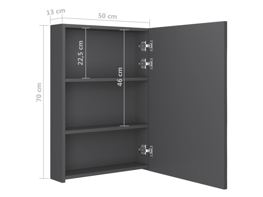 Je vyrobená z kvalitní MDF desky s melaminovou povrchovou úpravou, která zaručuje dlouholetou životnost. Energeticky úsporné LED pásky vám poskytnou optimální osvětlení pro líčení, holení či péči o pokožku. Dokonale rozzáří celou místnost, vaši tvář i váš úsměv. Uvnitř skříňky najdete 3 poličky s dodatečným úložným prostorem pro všechny vaše toaletní a kosmetické doplňky. Světlo můžete snadno zapnout či vypnout tlačítkem ve spodní části. Tato stylová a funkční skříňka ozvláštní vskutku jedinečným způsobem vybavení vaší koupelny!