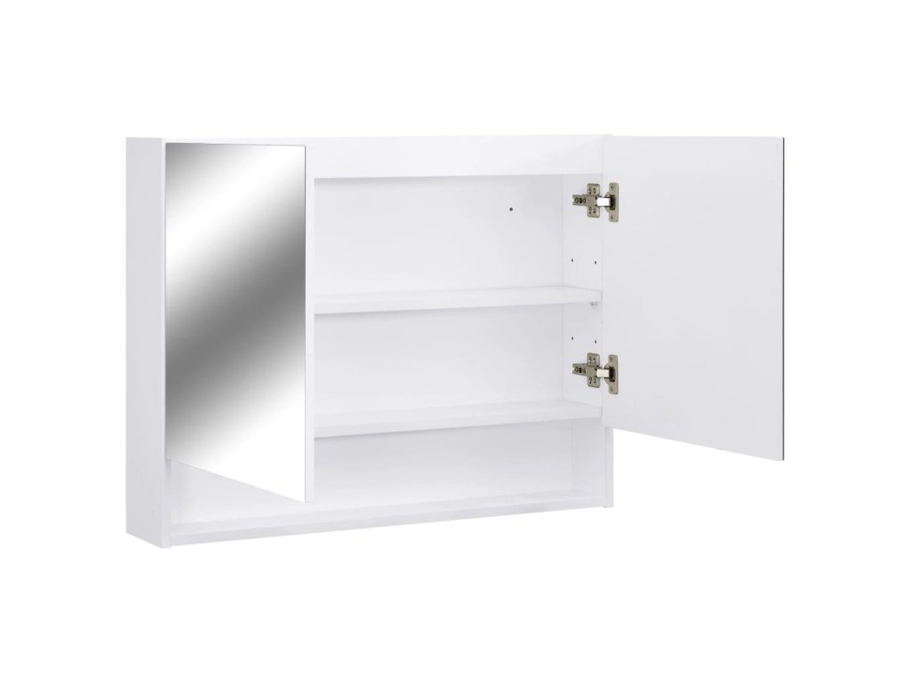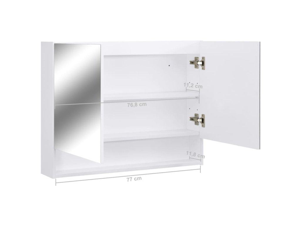 Skříňka je vyrobená z kvalitní MDF desky s melaminovým povrchem a zaručuje dlouhodobé používání. Světlo můžete snadno zapnout/vypnout tlačítkem. Energeticky účinný LED pásek vám poskytne to nejlepší osvětlení pro aplikaci make-upu, holení a péči o pleť. 2 dvířka a 3 poličky uvnitř skříňky nabízejí dostatek úložného prostoru. Můžete si zde umístit vaše hygienické a kosmetické a toaletní potřeby, jako jsou mýdla, šampony, zubní pasty atd. Uprostřed skříňky je pohyblivá přepážka, kterou si můžete nainstalovat podle svých potřeb. Snadno se čistí vlhkým hadříkem.