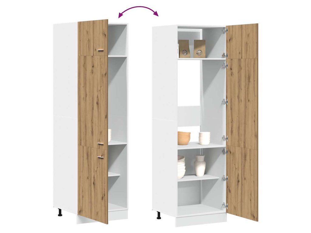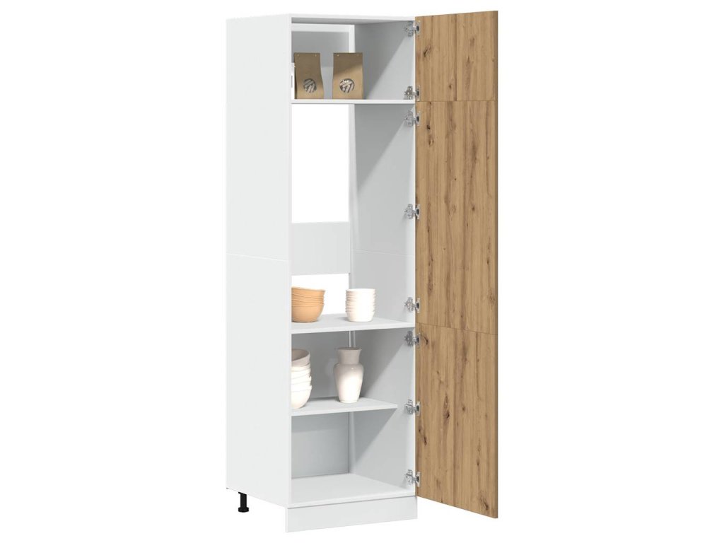 - Dostatek úložného prostoru: Skříň má 4 police se 3 dvířky, nabízí tedy dostatek prostoru pro uložení mís, talířů, hrnců nebo kuchyňských spotřebičů.