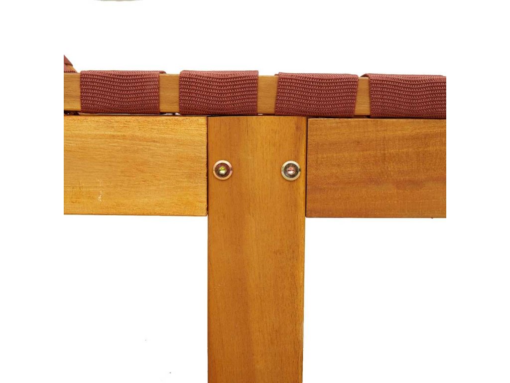 - Proplétané popruhy: Sedák a opěradlo zahradního lehátka jsou tvořeny popruhy, které zajišťují pohodlí, eleganci a prodyšnost.