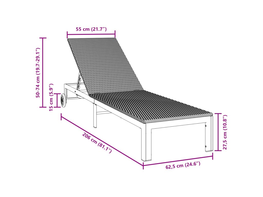 Toto polstrované sluneční lehátko spojuje styl a komfort s moderním designem, takže je perfektní doplněk k venkovnímu prostoru. S krásnou hnědou barvou a hladkým povrchem je to ideální místo pro odpočinek, dostatečně prostorné pro jednu osobu, aby si užila slunce nebo se uvolnila.