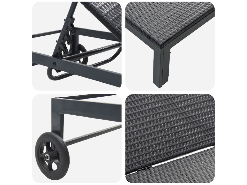 - Pevná konstrukce: S robustním a odolným kovovým rámem je toto sluneční lehátko navrženo tak, aby vydrželo různé počasí.