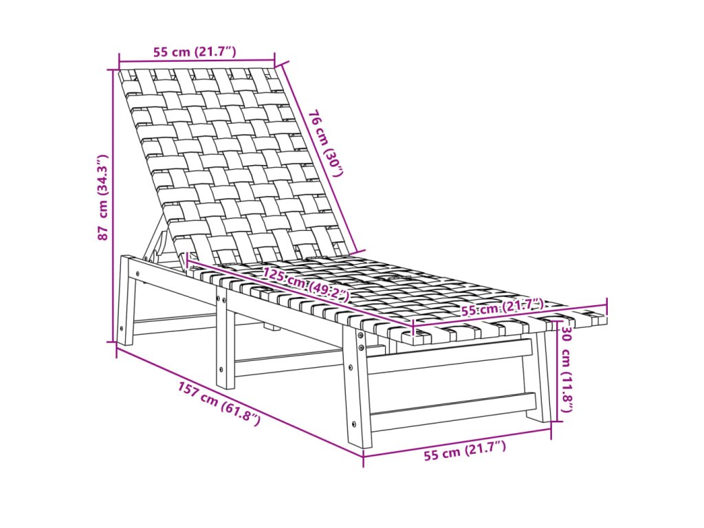 - Proplétané popruhy: Sedák a opěradlo zahradního lehátka jsou tvořeny popruhy, které zajišťují pohodlí, eleganci a prodyšnost.