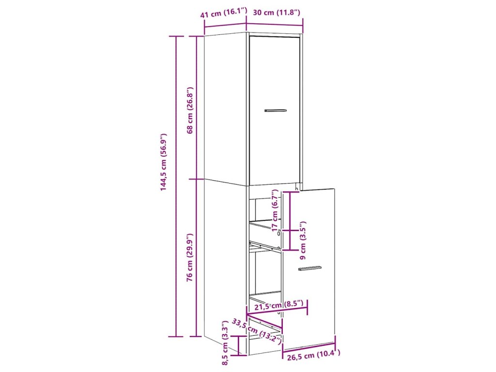 - Rozměry: 30 x 41 x 144,5 cm (Š x H x V)