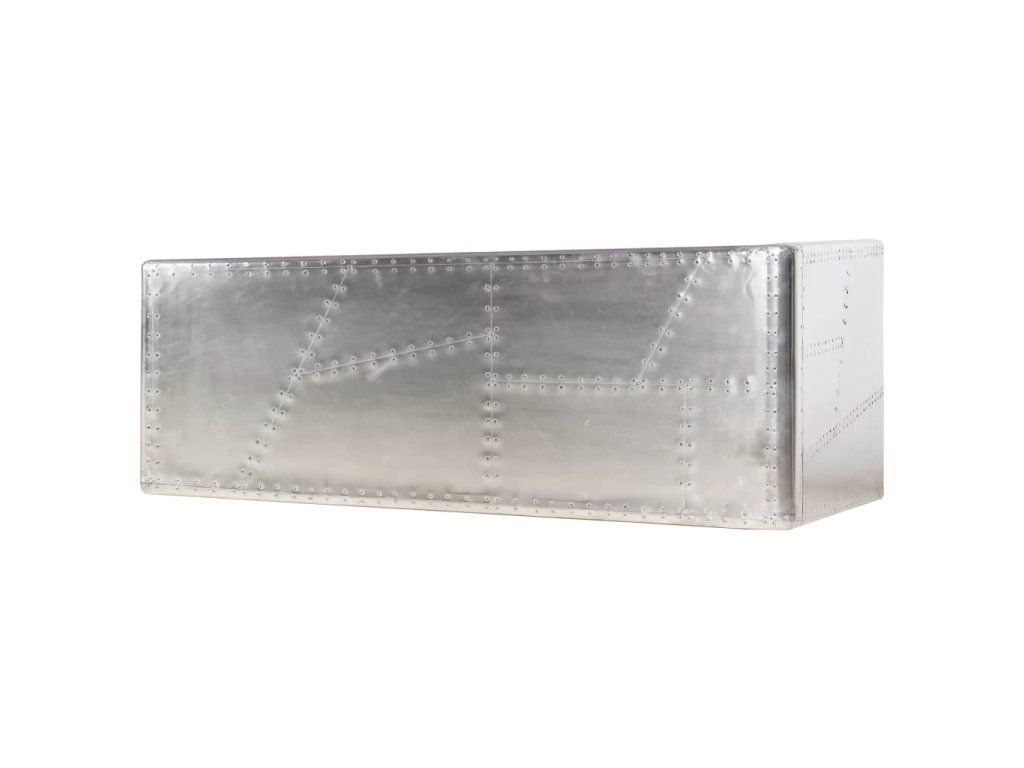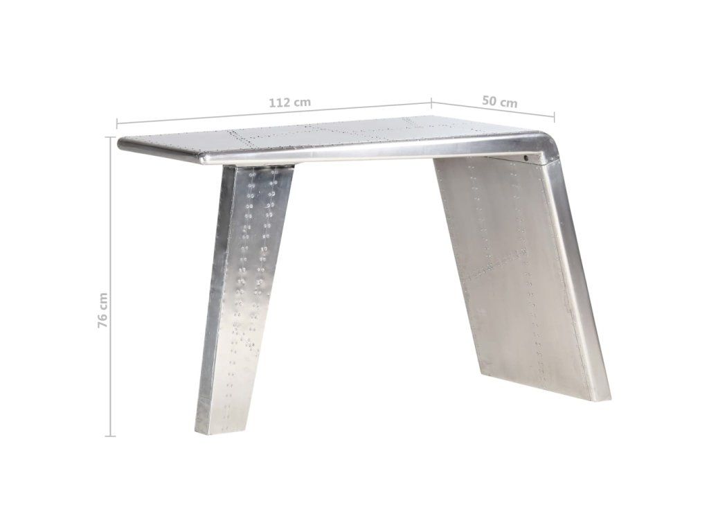 Psací stůl v leteckém stylu je vyroben ze zpracovaného dřeva. Na povrchu ho pokrývají leštěné kovové pláty a na odolnosti mu výrazně přidávají ničím nezakryté ocelové šrouby. Stolní deska je velmi široká, a poskytuje tak spoustu místa pro odkládání složek, papírů, knih a dalších osobních věcí. Montáž psacího stolu je snadná.