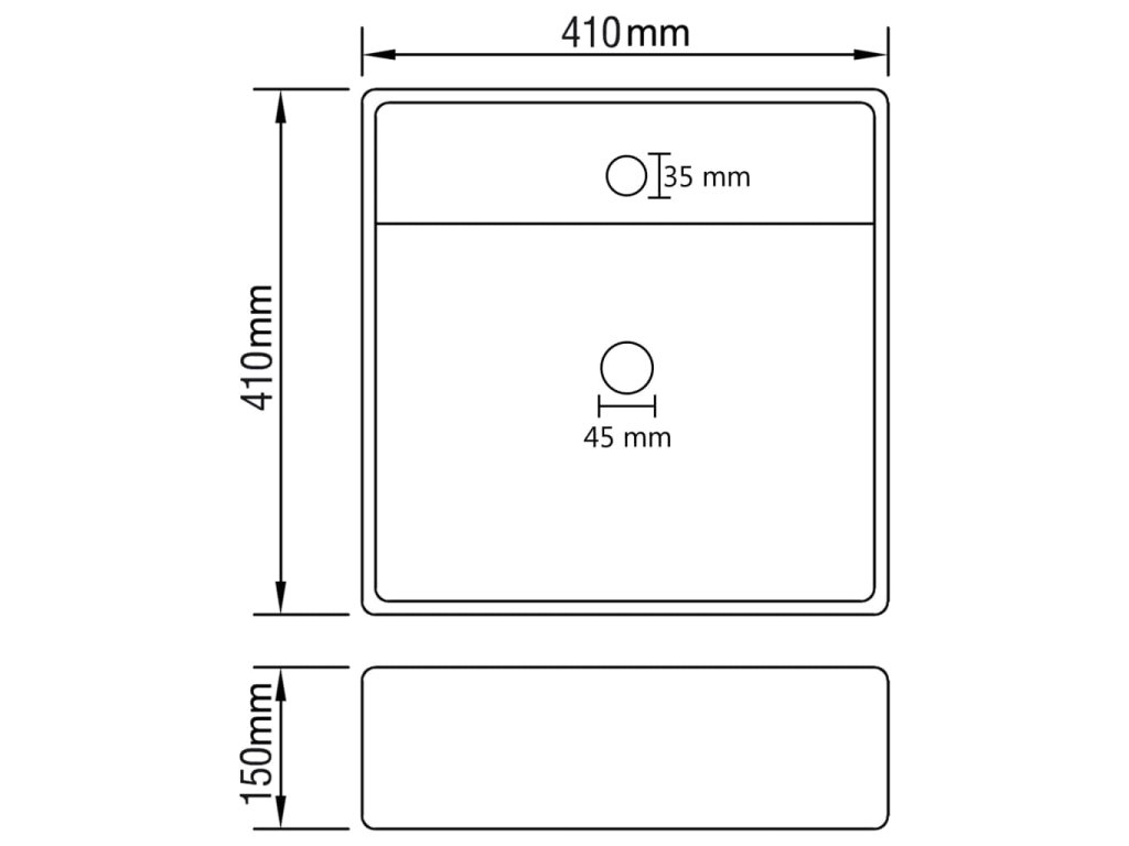 - Celkové rozměry: 410 x 410 x 150 mm (Š x H x V)