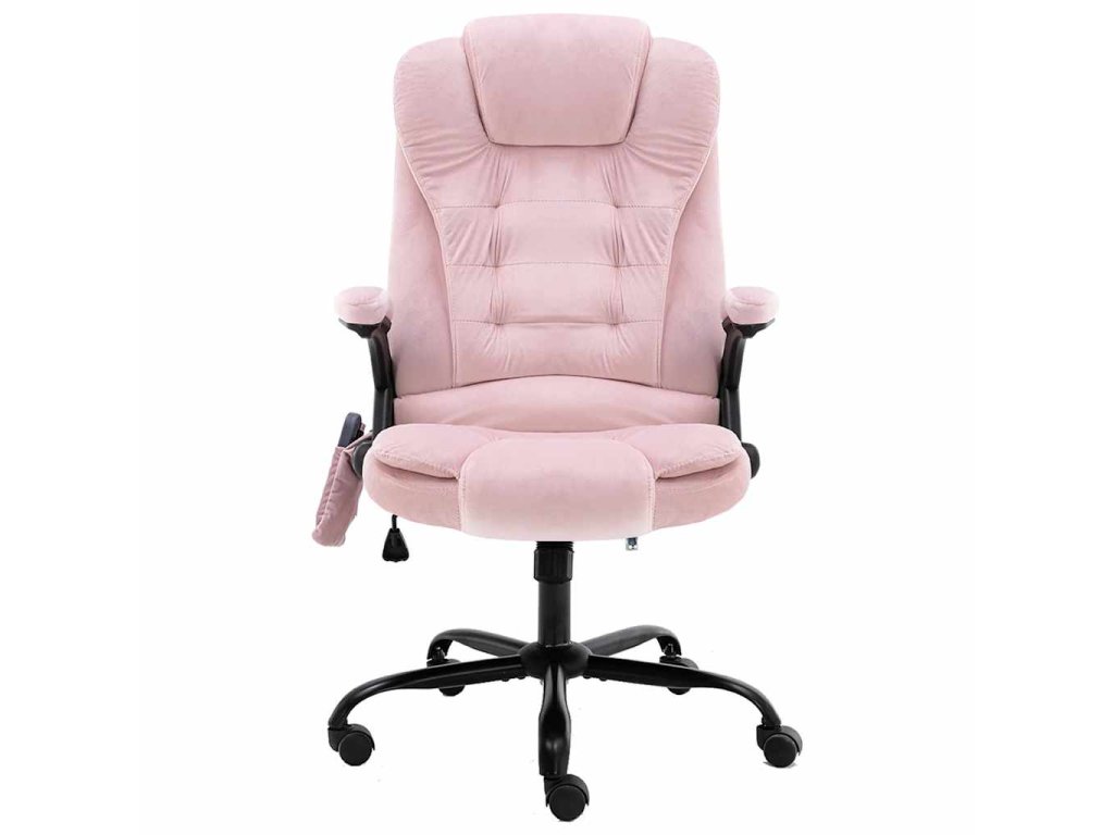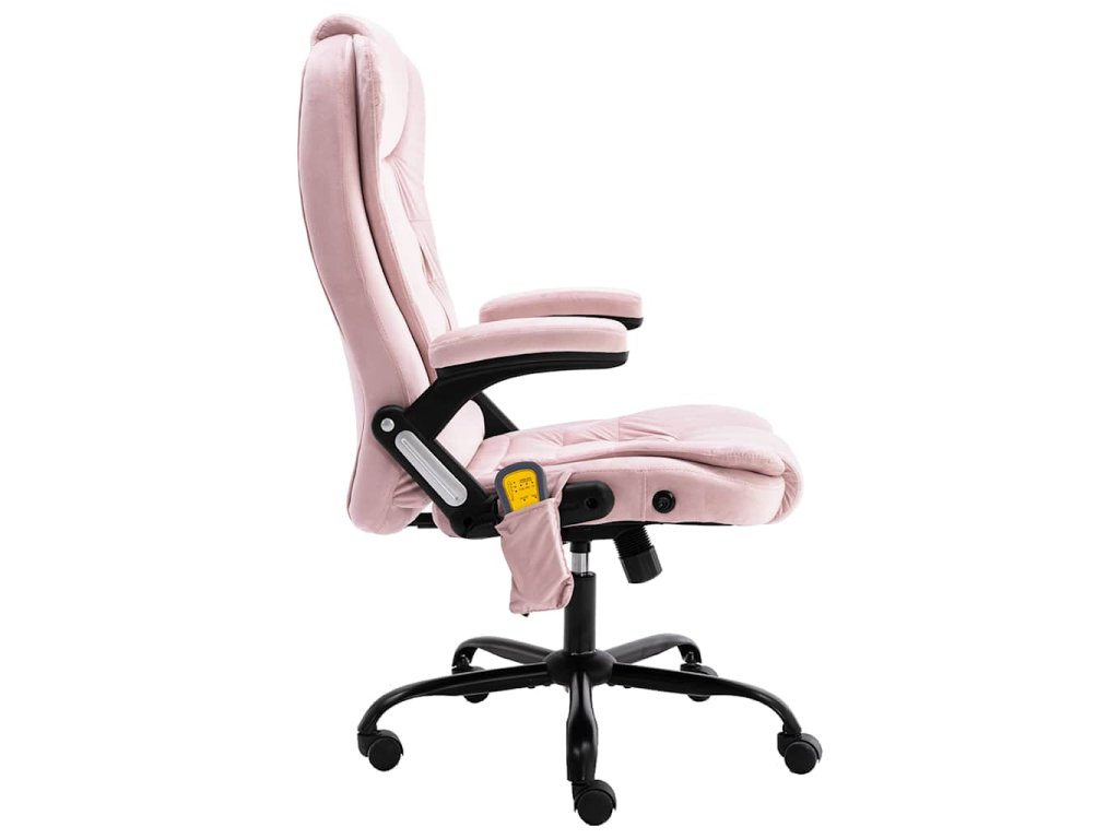 Židle má vysoké opěradlo, zaoblené područky a hustě polstrovaný sedák, aby se vám na ní dobře sedělo i během dlouhých pracovních dnů. Její výšku lze nastavit, takže ji bez problémů přizpůsobíte výšce psacího stolu, a dosáhnete tak maximálního pohodlí i zdravé pozice páteře. Polohovací křeslo je vybavené nylonovými pojezdovými kolečky pro snadný pohyb. Židle k počítači má 4 masážní body na záda a 2 masážní body na hýždě. Disponuje také funkcí vyhřívání pasu.