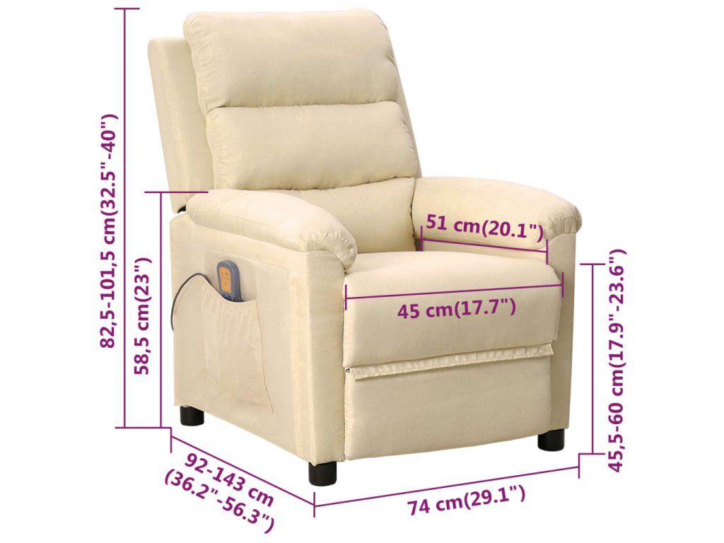 - Rozměry sklopeného křesla: 74 x 143 x 82,5 cm (Š x H x V)