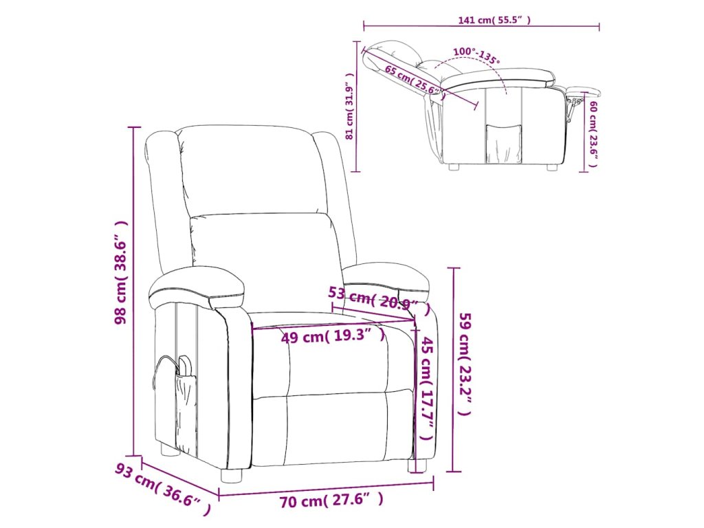 - Rozměry při poloze vsedě: 70 x 93 x 98 cm (Š x H x V)
