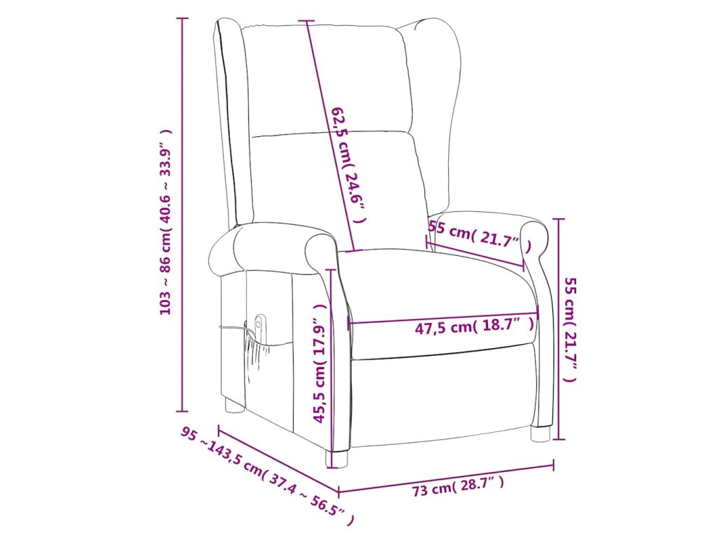 - Rozměry při poloze vsedě: 73 x 95 x 103 cm (Š x H x V)