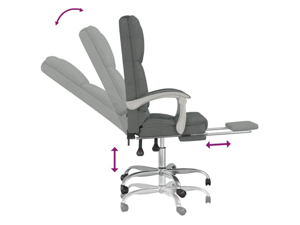 - Nastavitelné opěradlo a výška: Židle je speciálně navržena tak, aby se dala sklápět a vy jste si mohli opěradlo i opěrku nohou sami nastavit, jak vám to bude nejlépe vyhovovat. Pomocí páčky si můžete nastavit výšku sedáku podle vašich představ.