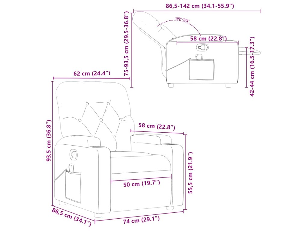 - Funkce ručního sklápění: Toto polohovací křeslo má na pravé straně páčku. Jednoduchým zatažením za páčku můžete ručně nastavit opěrku nohou a opěradlo do libovolné polohy podle svého pohodlí. Tato funkce umožňuje maximální náklon 135 stupňů. Opěradlo se navíc může snadným zatažením za páčku rychle vrátit do původní polohy.