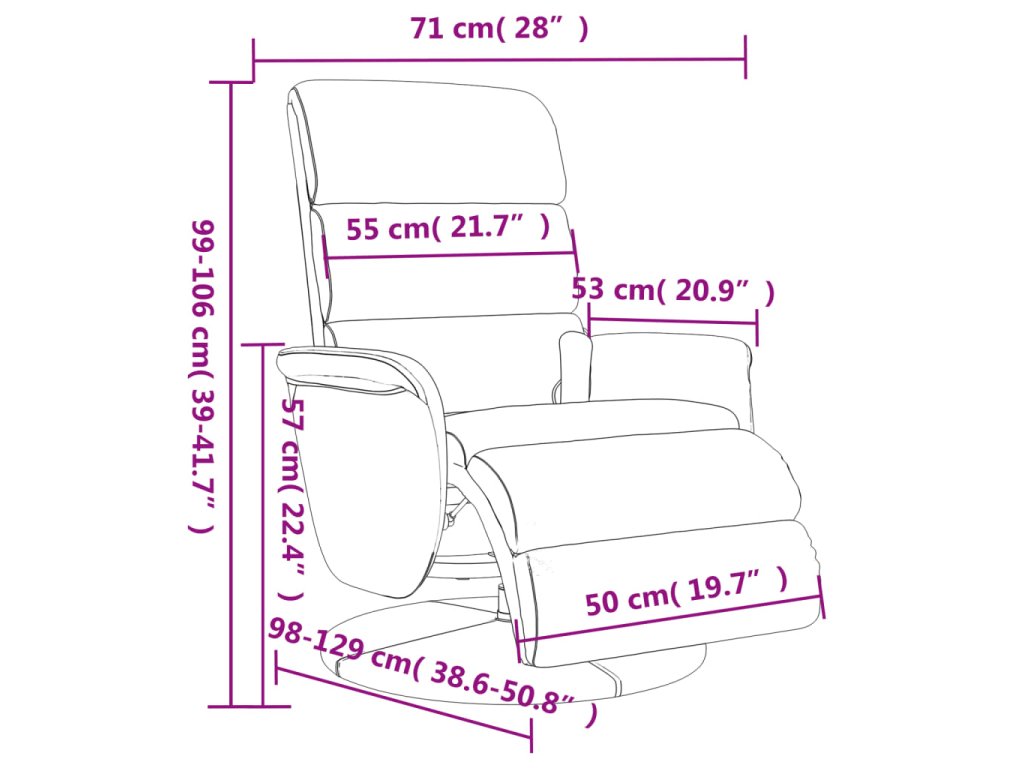 - Rozměry ve vzpřímené poloze: 71 x 98 x 106 cm (Š x H x V)
