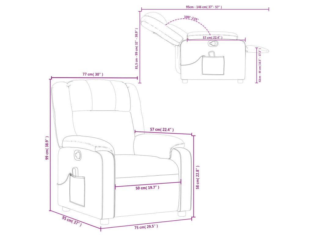 - Funkce ručního sklápění: Toto polohovací křeslo má na pravé straně páčku. Jednoduchým zatažením za páčku můžete ručně nastavit opěrku nohou a opěradlo do libovolné polohy podle svého pohodlí. Tato funkce umožňuje maximální náklon 135 stupňů. Opěradlo se navíc může snadným zatažením za páčku rychle vrátit do původní polohy.